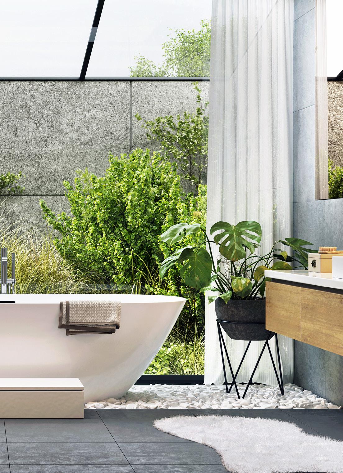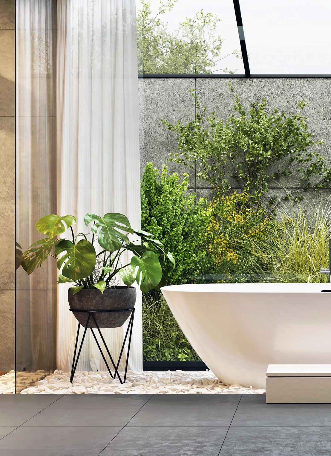 El diseño apoya los rituales de bienestar mediante aire fresco, vegetación interior, agua purificada y espacios dedicados a la calma. La naturaleza no se considera un elemento decorativo, sino una parte fundamental del funcionamiento del hogar.