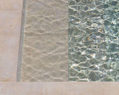LEATHER FLOOR TILE THROUGHOUT 16”X 24” DIANA ROYAL / SQUARE EASED COPING / TREADS & RISERS