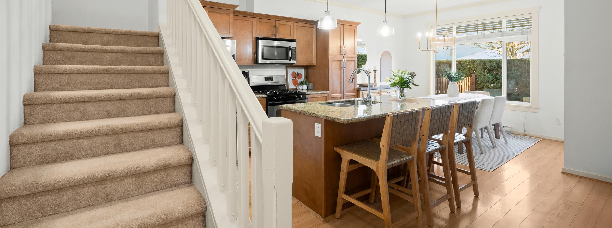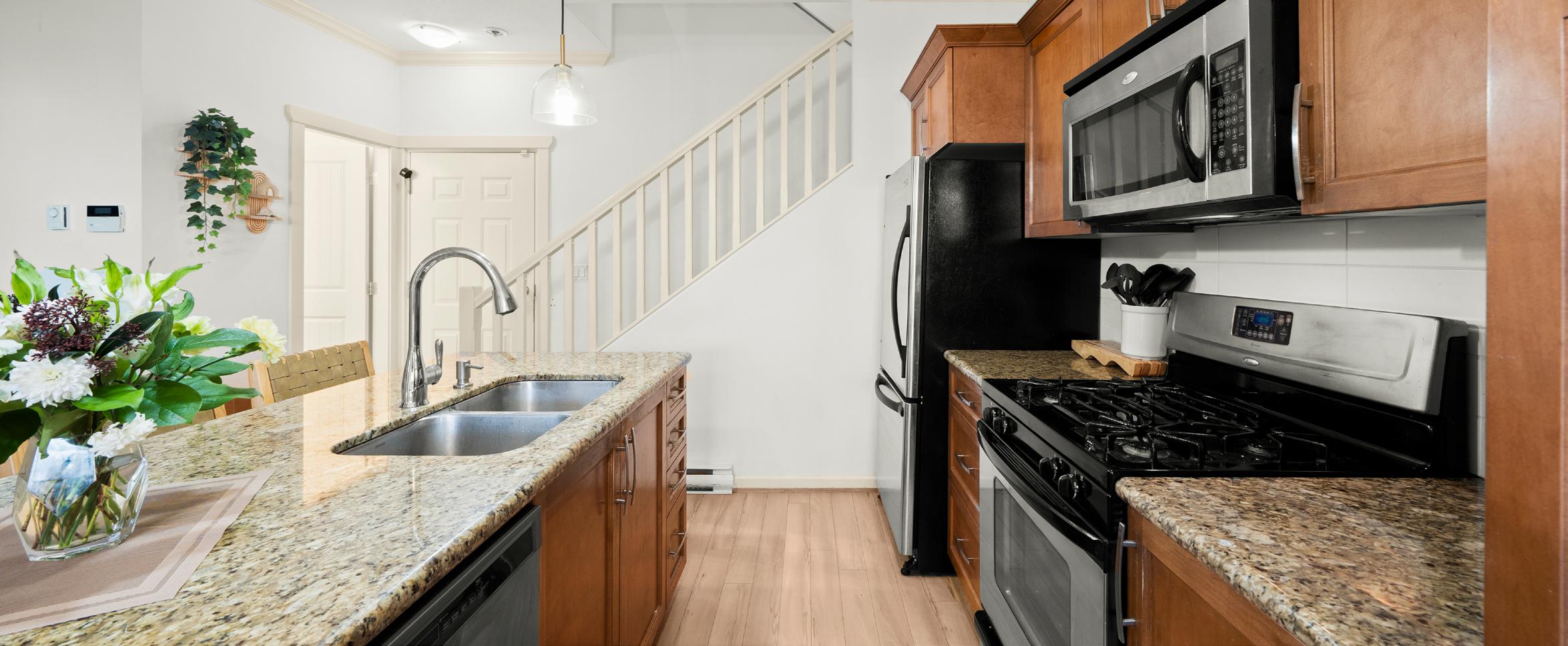 Sought-after, Central Park West! Rarely available TWO level, 3-bed/2.5-bath townhome is perfectly positioned next to Lions Park & directly across from Trenant Park. Truly a “walk-everywhere” living with shops, restaurants, transit & schools steps away. Offering 1,358 sq. ft. over 2 levels, this home is exceptionally bright with 9’ ceilings on the main. Enjoy a spacious, open-concept layout & a large island that anchors the kitchen, living, & dining areas. Upstairs, you’ll find impressively large, oversized bedrooms with a stunning primary retreat, walk-in closet & spa-inspired 5pc ensuite. Step right out your front door to a private, fully fenced yard with lush turf, perfect for kids, pets, or morning coffee. Upstairs laundry + double garage (444 sq. ft.) with epoxy flooring. Meticulously maintained and move-in ready.