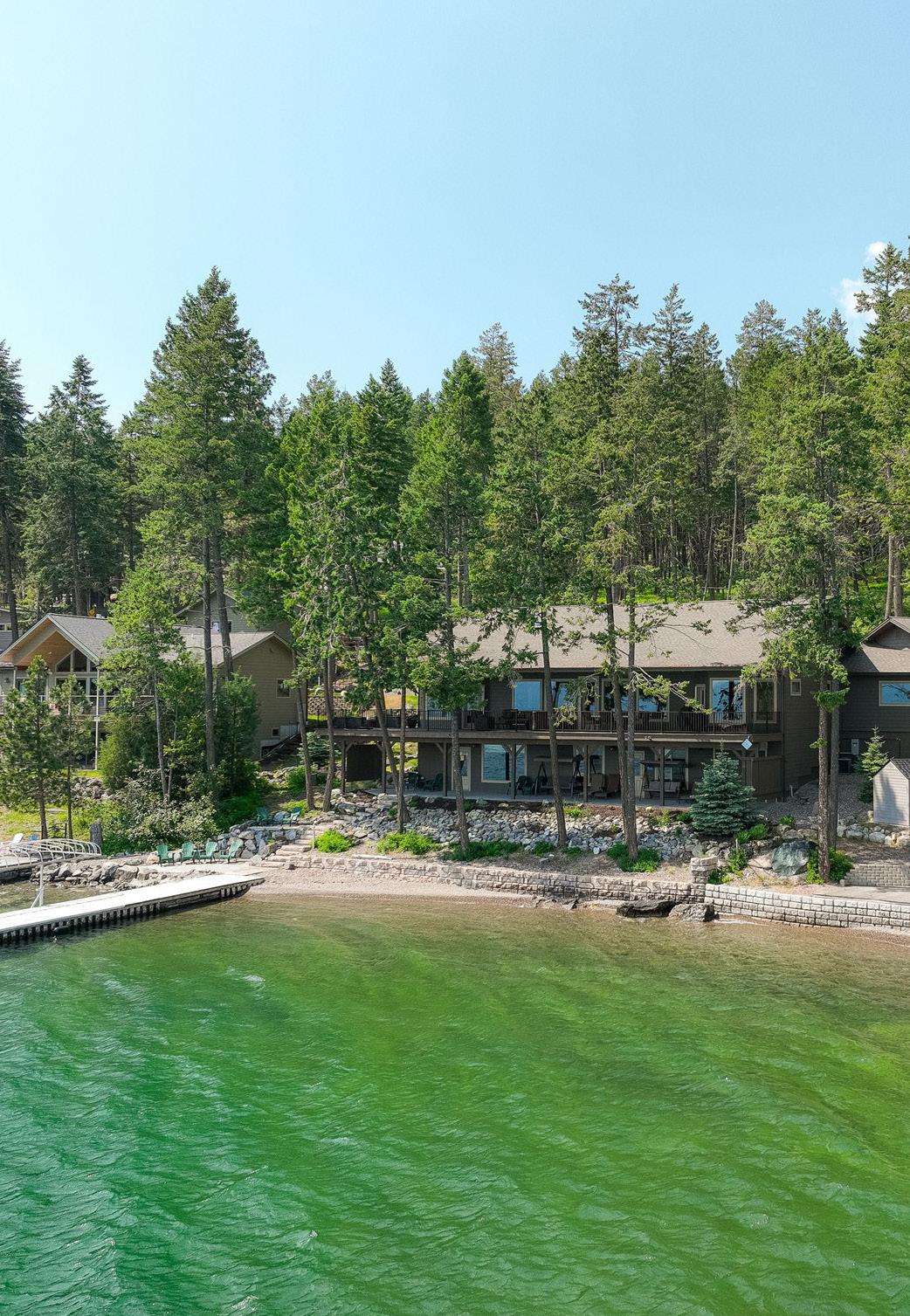 Perched above the sparkling waters of Flathead Lake, this extraordinary luxury estate offers sweeping views of the Swan Mountains & into Glacier National Park. Set on 2.67 private acres, on two lots with 251 ft. of pristine lake frontage, this property blends elegance, functionality, and Montana’s natural beauty. Every detail of this home has been thoughtfully enhanced with premium upgrades. A custom-designed funicular provides seamless access for all ages down to the water’s edge, where a beautifully upgraded dock system awaits, complete with a new hydraulic boat lift & a cantilever double PWC lift with interior catwalk. You will also find a mermaid pond at the water’s edge.