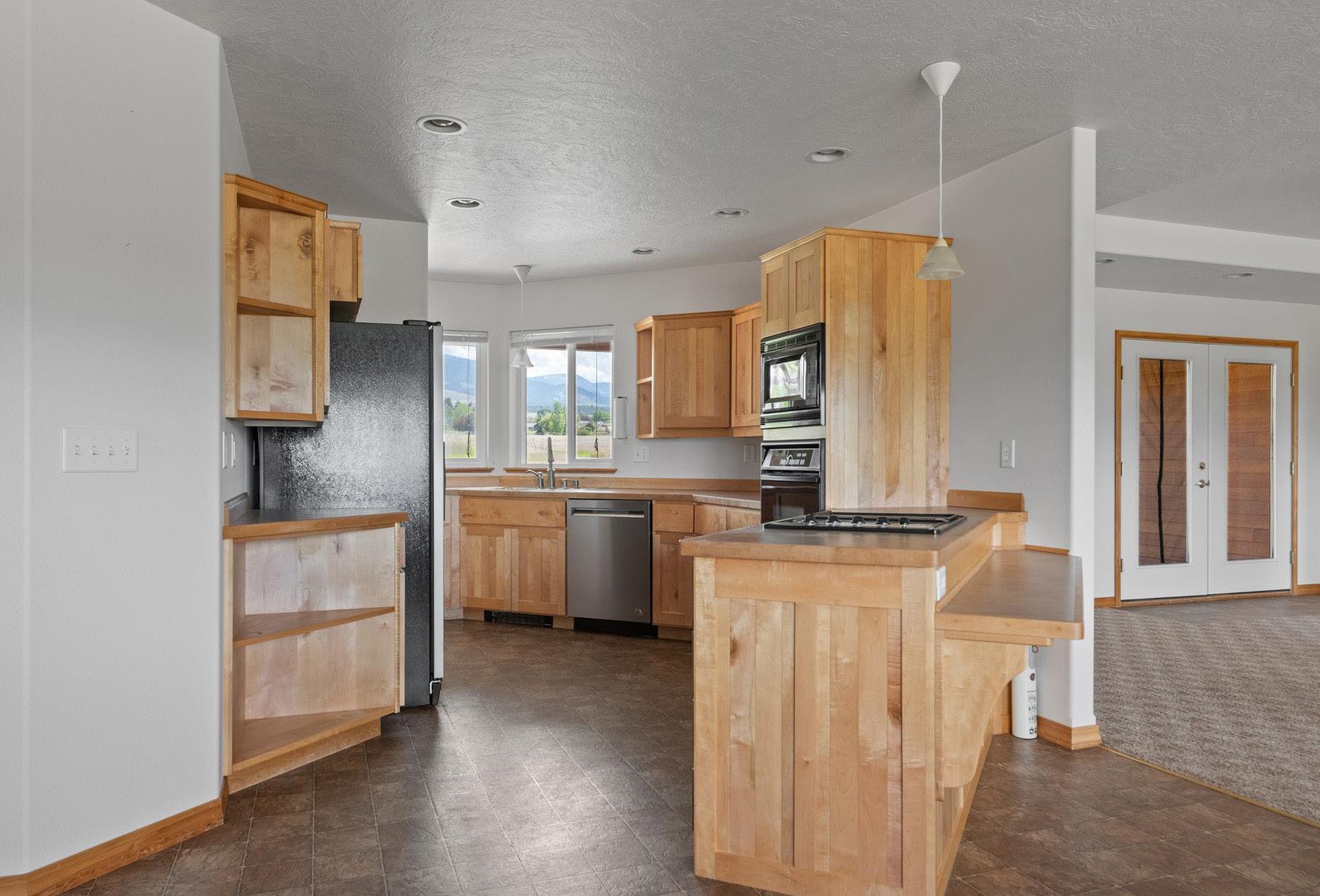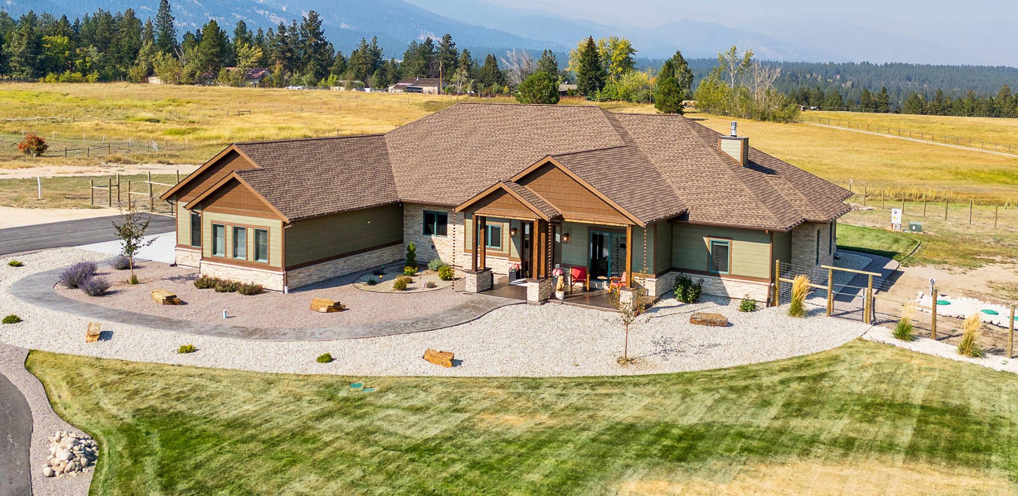 Situated on 5 flat acres of pristine Western Montana’s Glacier Country, 26190 Sliding Horse Lane in Arlee, Montana offers an idyllic escape with stunning views of the surrounding Mission Mountains. This meticulously crafted home was constructed by builder Buck Lake, owner of Saddle Horn Custom Homes, for himself, and showcases thoughtful design and attention to detail. Just 20 minutes North of Missoula and 30 minutes from the University of Montana and medical campuses, this beautiful property features 4 uniquely designed large bedrooms and 3 and a half baths with thoughtful planning right down to wood trim, switch plates, and lighting. The high ceilings and spacious floor plan boast lots of natural light thoughout.