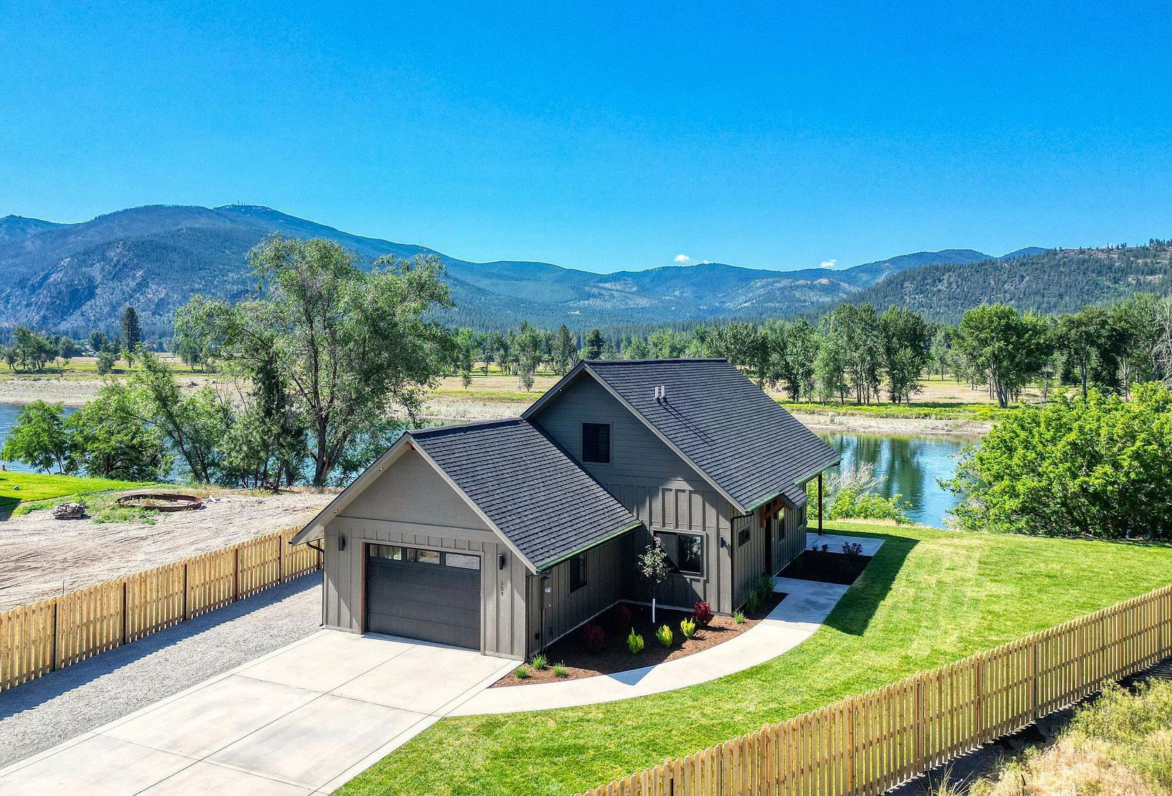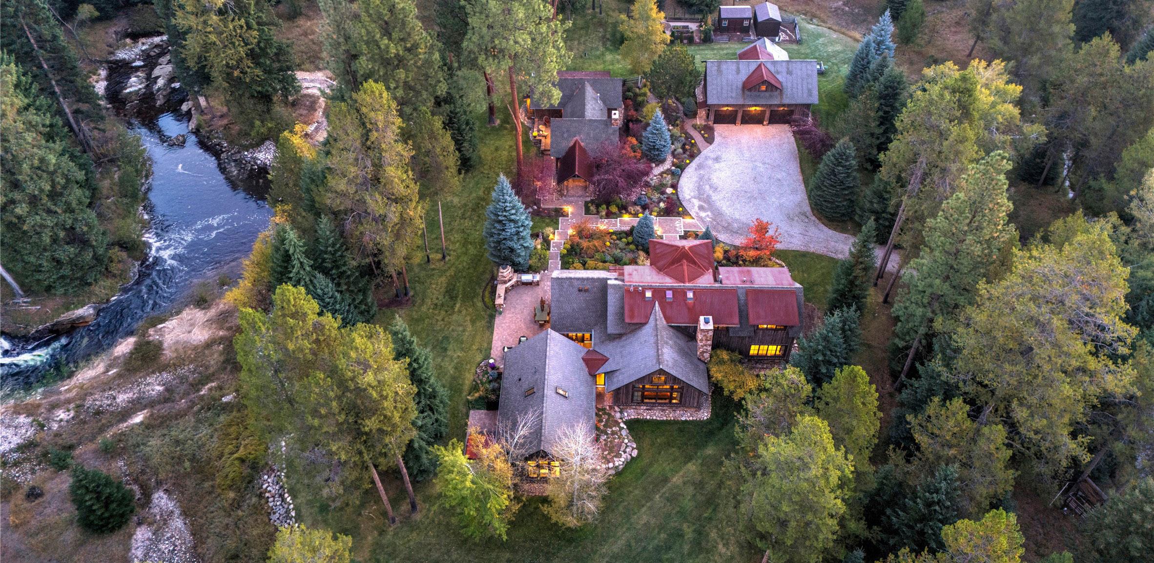 Located within the Blue Mountain neighborhood of Missoula, this exceptional property presents a rare opportunity to own a piece of luxury amidst a private, natural setting, while still being close to town. Spanning over 130 acres of pristine land, with 2,500 Ft. +/- of coveted private Bitterroot River frontage, this estate epitomizes high-end living in the heart of Big Sky Country. At the forefront of this property stands not only an executive 10,408 sq. ft. home, but also a detached 4,324 sq. ft. shop, with high ceilings and 4 oversized overhead doors, and a charming 960 sq. ft. caretaker home. These structures, meticulously designed and crafted, provide both practical functionality and additional living space for guests or staff.