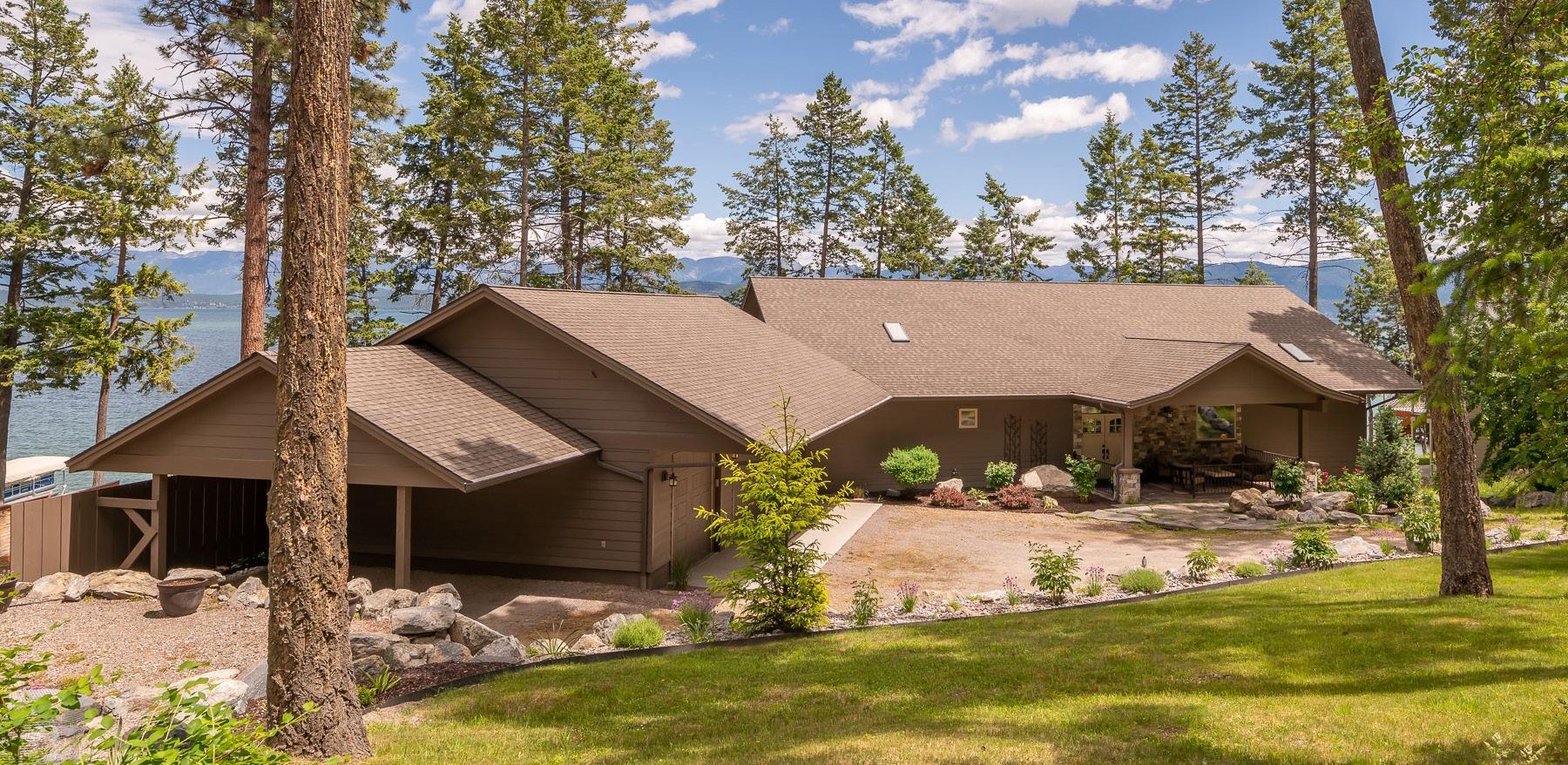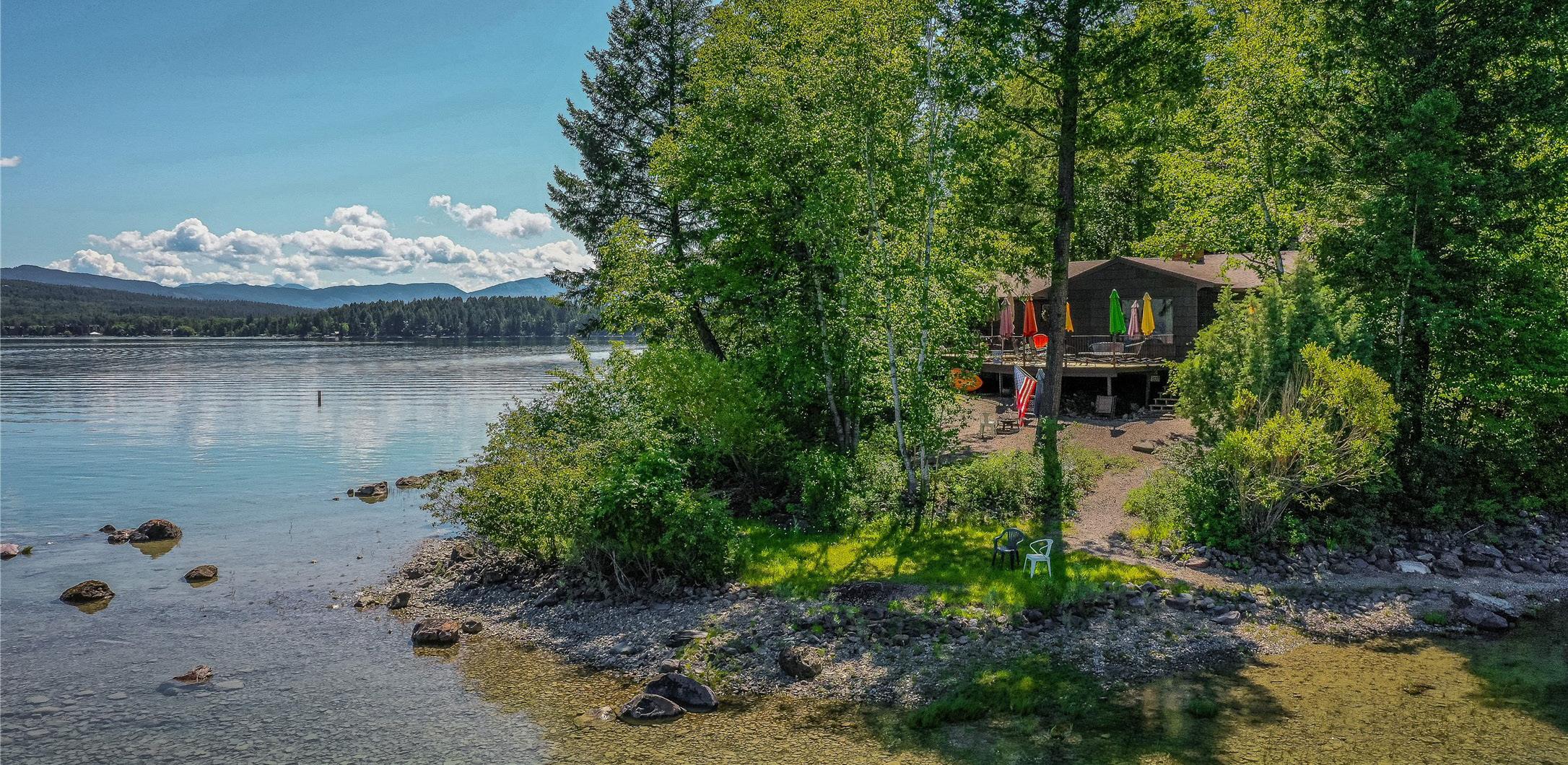 Welcome to one of the most unique lots you’ll find on Whitefish Lake! Featuring 280 degree pinnacle lake views, this charming lake house is in excellent shape and has been enjoyed by the same family for many decades. If you desire a new build, this lot is gently sloped and would be easy to build on with city utilities available and room to build an amazing lake home. Sitting on a private point with 274± feet of frontage, this lot boasts stunning views from all angles. You’ll experience the perfect blend of tranquility and convenient accessibility close to town. This 3-bedroom, 3-bathroom home boasts a spacious living and dining room, complete with beautiful hardwood floors and large windows that fill the space with natural light and lake views.