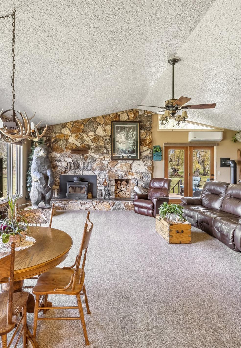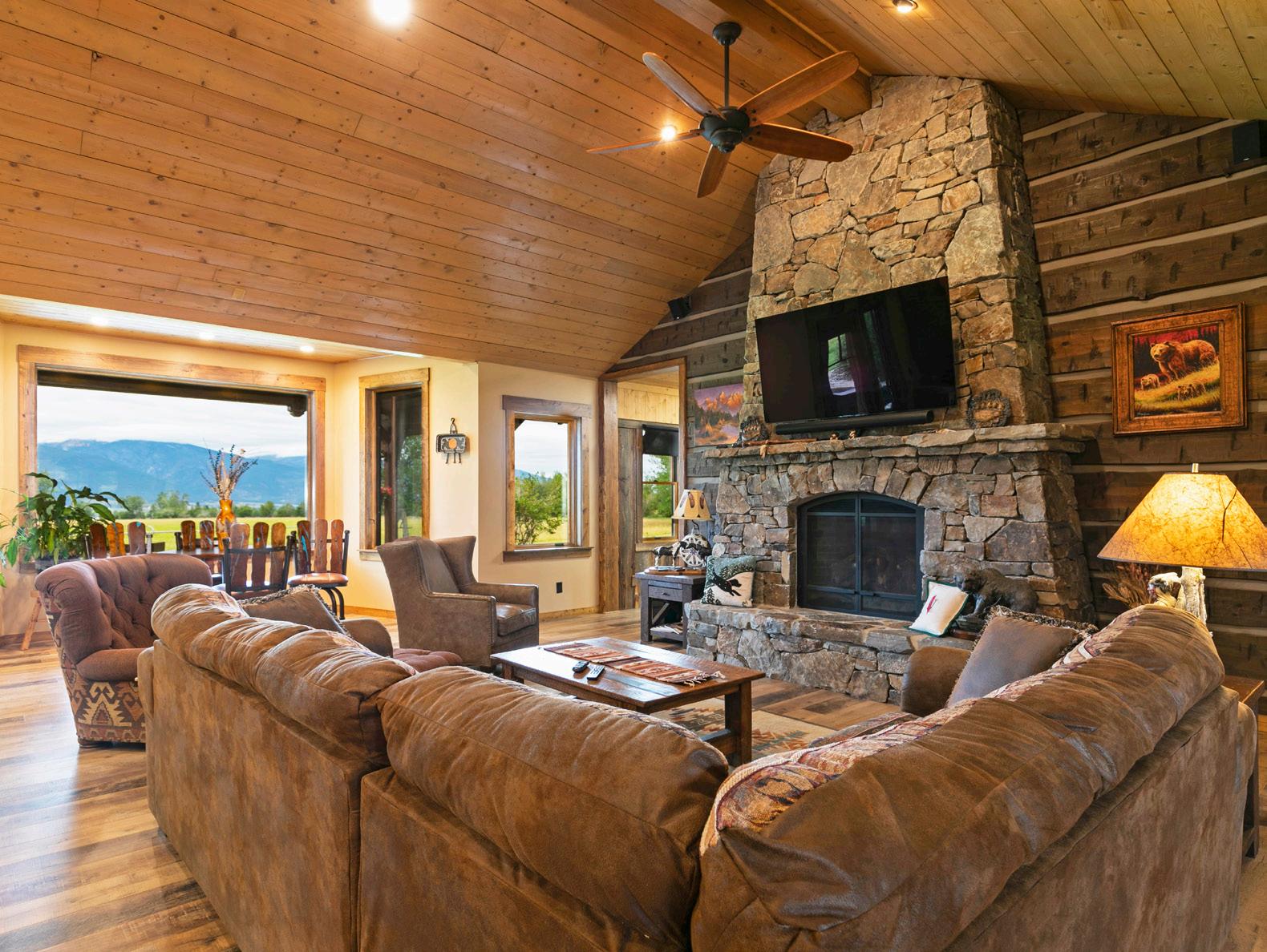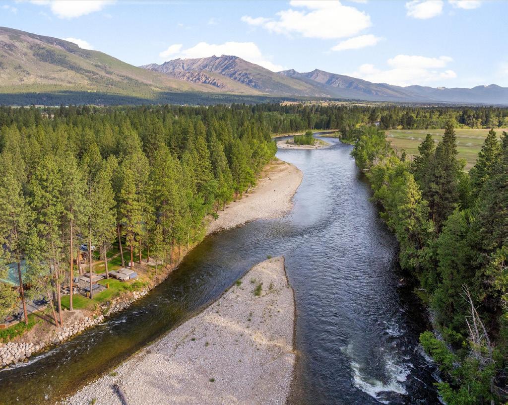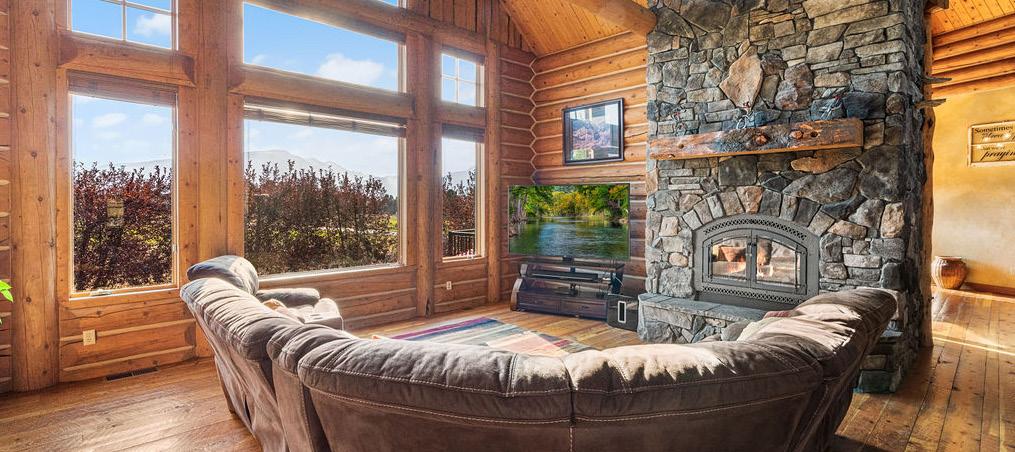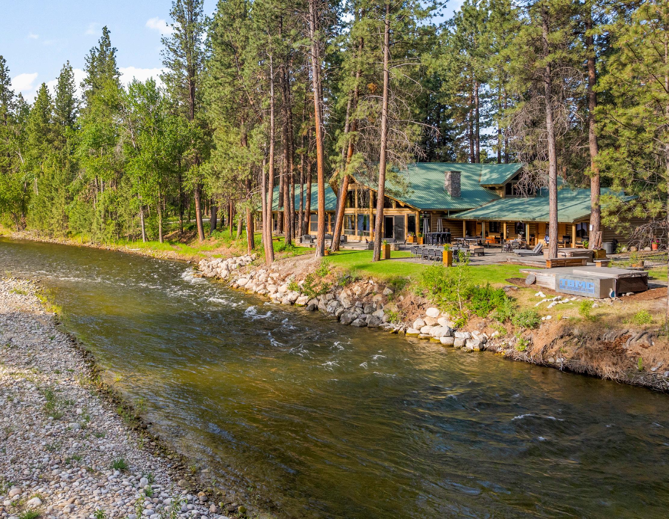 Set on nearly 22 acres with almost 2,000 ft of prime Bitterroot River frontage, this unique Hamilton, Montana property features a rare combination of river access and high-end accommodations. At the heart of the property stands a stunning log home lodge, showcasing classic Montana style and craftsmanship throughout. Inside, you’ll find attractive hardwood flooring, a beautiful river rock fireplace in the main common area, and a warm, inviting atmosphere that blends comfort and quality. The lodge includes three guest suites plus a deluxe primary suite, each room thoughtfully and stylishly appointed to provide ruggedyet-refined Montana character. The entire property is being offered fully turnkey, including furnishings and equipment.