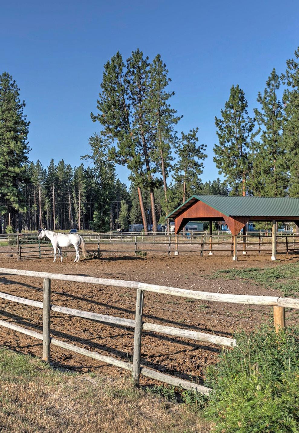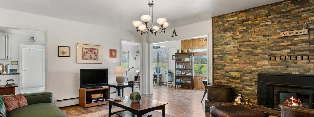 Set in the heart of the Bitterroot Valley, the sprawling St. Clair Ranch spans approximately 244 deeded acres of productive ground with deep agricultural roots, strong equestrian infrastructure, and iconic Montana scenery in every direction. Just minutes from Stevensville and within easy reach of both Missoula and Hamilton, this is a working property with all the essentials and plenty of Montana character. The recently remodeled twobedroom, three-bathroom main home blends classic rustic design with modern comfort. Natural materials, warm wood tones, and simple, enduring finishes give it a timeless feel that fits right into the landscape. With 3,000 square feet of living space, the home is spacious without feeling overbuilt—comfortable, practical, and authentically Montanan.