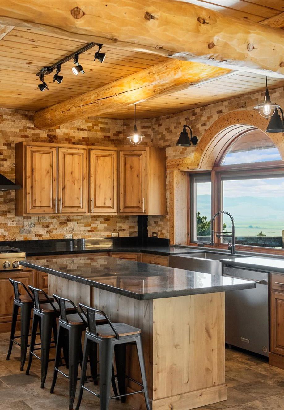 This newly constructed executive home is a masterpiece of design and craftsmanship, featuring stunning views of both the Bitterroot and Sapphire Mountains. Located just outside of Hamilton, MT, on an expansive 27.79 acres, this property offers the perfect blend of luxury, functionality, and natural beauty. Being sold turn key and fully furnished, the main home, spanning an impressive 7,881 sq. ft, is a the perfect combination of modern amenities with rustic charm. The original log cabin on the property served as the foundation, around which the home was built and expanded. Impeccable attention to detail and thoughtful construction ensure that every aspect of this home is a work of art.