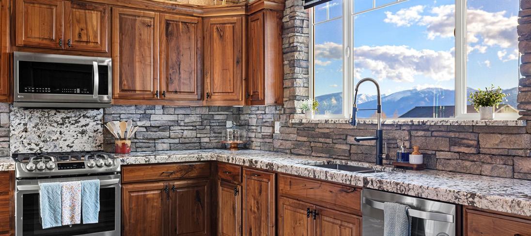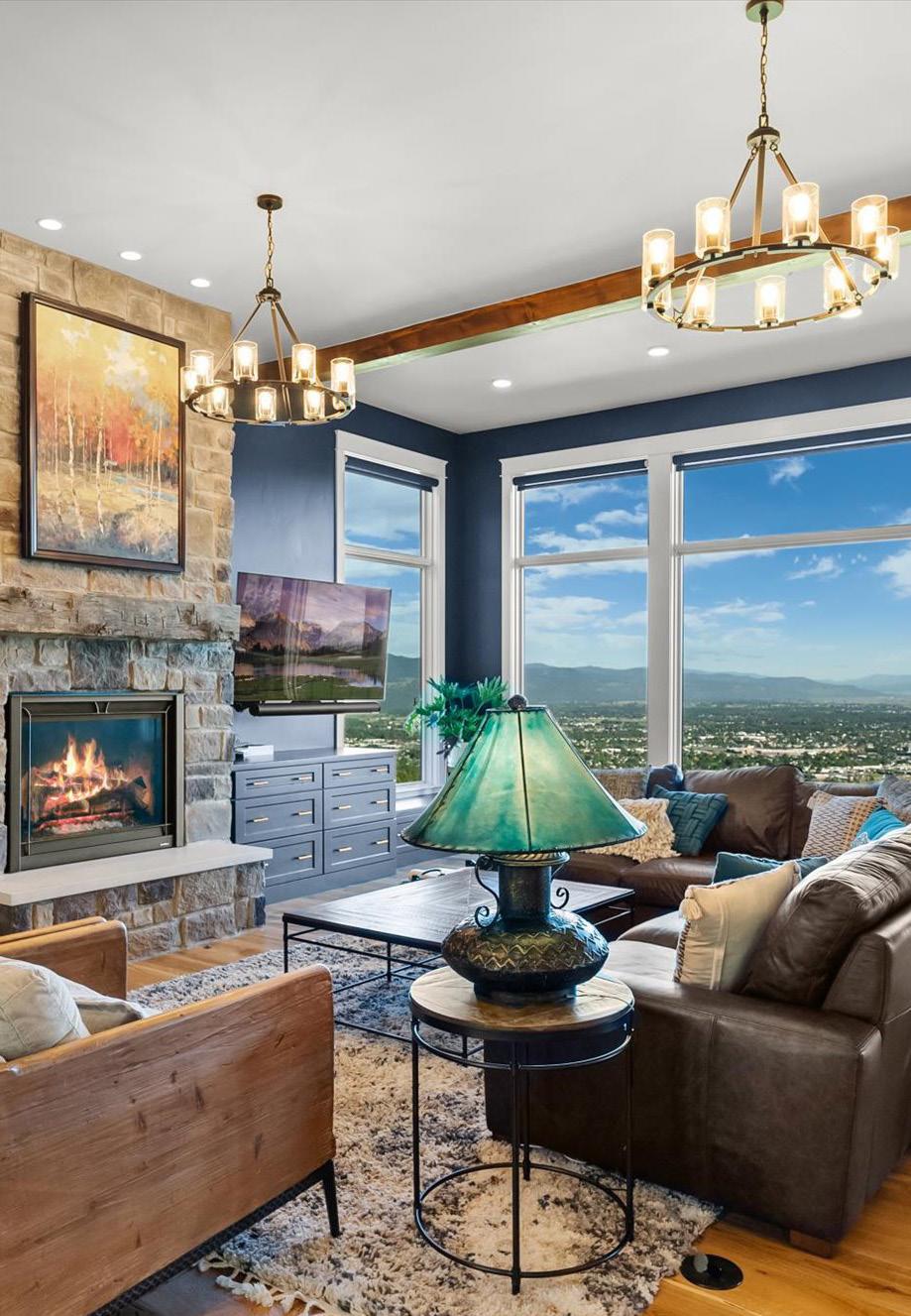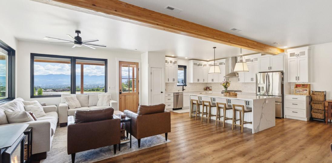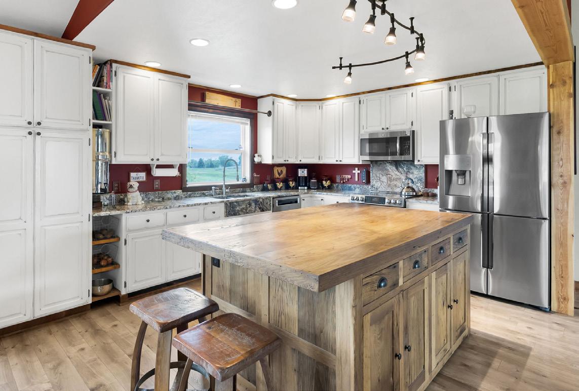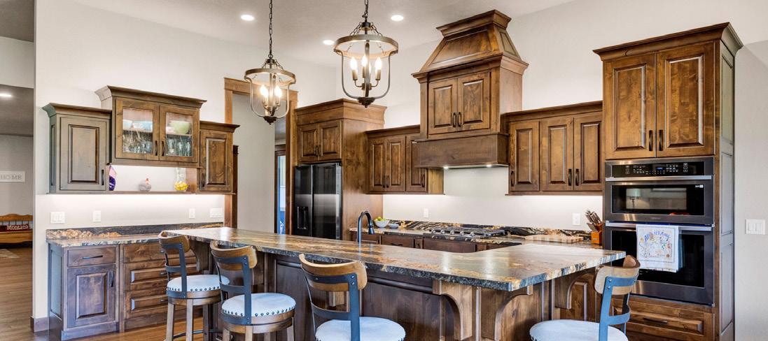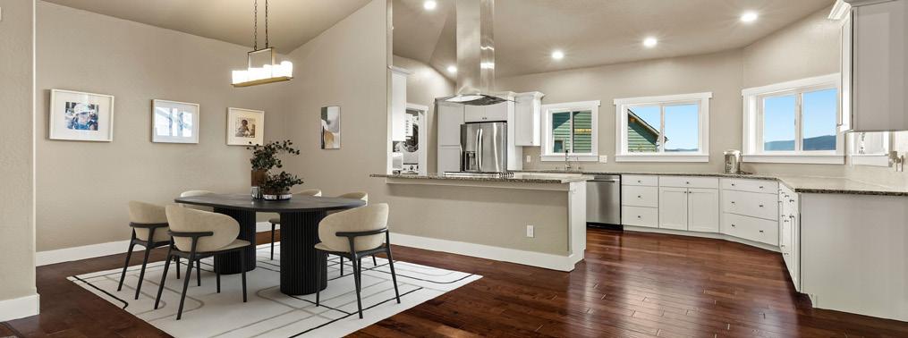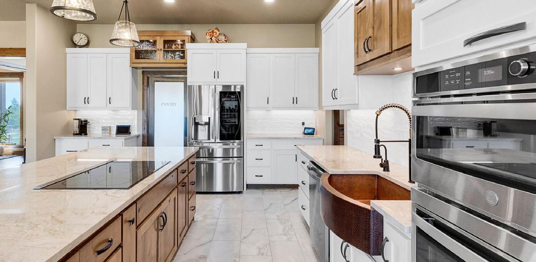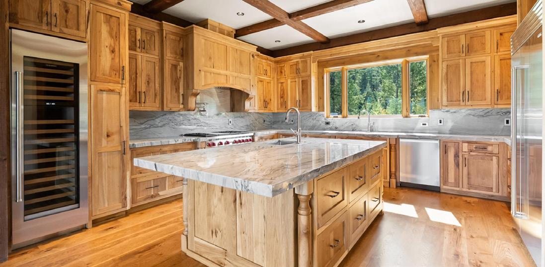 Completed in 2022, this 7,418 sq. ft. custom luxury home at 1133 Pacific Drive offers elevated Montana living with panoramic views of the Missoula Valley and surrounding mountains. Set on 1.87 acres, the home features 5 bedrooms, 5 bathrooms, and an openconcept main level with a dramatic stone fireplace and expansive windows that flood the space with natural light. The chef’s kitchen is a true showpiece, featuring quartz countertops, a large island with seating, Wolf gas range, Sub-Zero refrigerator, Bosch dishwasher, and a scullery ideal for entertaining. Just minutes from downtown Missoula, this extraordinary property blends luxury, smart-home technology, and breathtaking natural surroundings