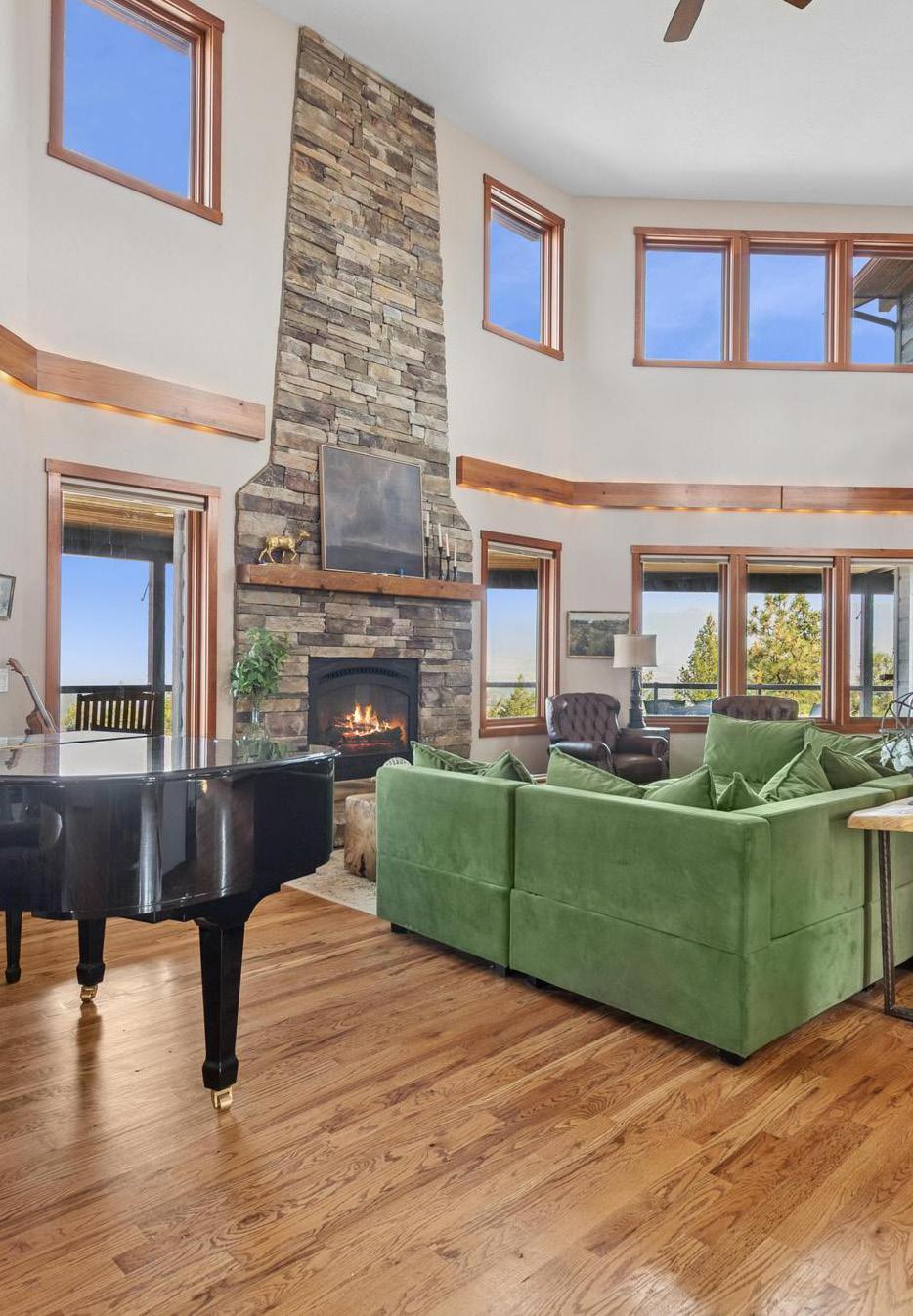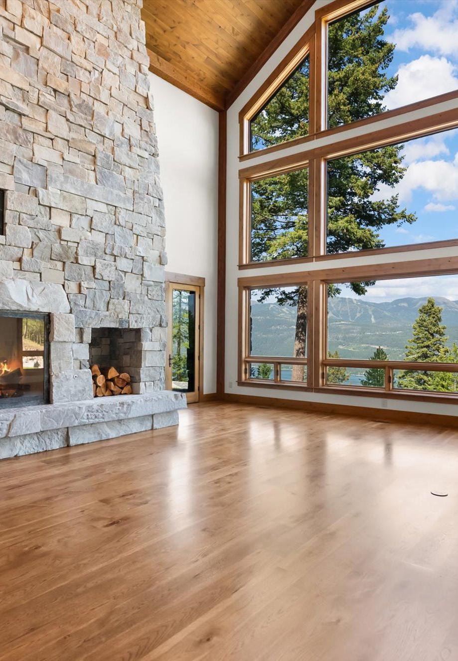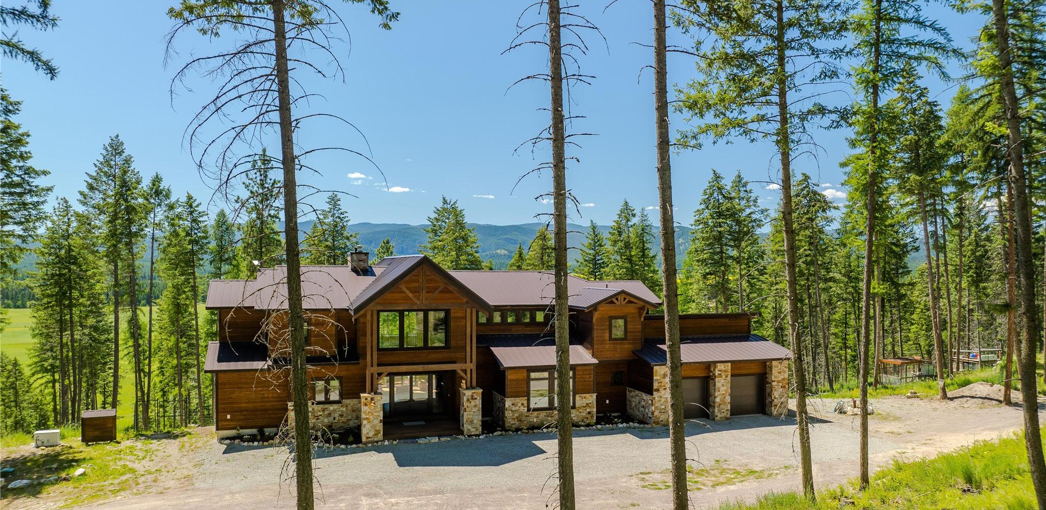 Luxury, privacy, and panoramic views come together in this extraordinary retreat on 7 acres atop Lion Mountain, minutes from downtown Whitefish. With breathtaking views of Whitefish Lake and Whitefish Mountain Resort, complete with community lake access, this 5,979 sq ft newly built home offers the perfect blend of elegance and Montana tranquility. The 34-foot vaulted ceilings, expansive wall of windows, and floor-to-ceiling wood-burning fireplace create a grand yet inviting atmosphere. The main-level primary suite includes a gas fireplace, spa-like bath, and walkin closet. Upstairs, a second primary suite features a gas fireplace and walk-in closet, two guest rooms and bonus space.