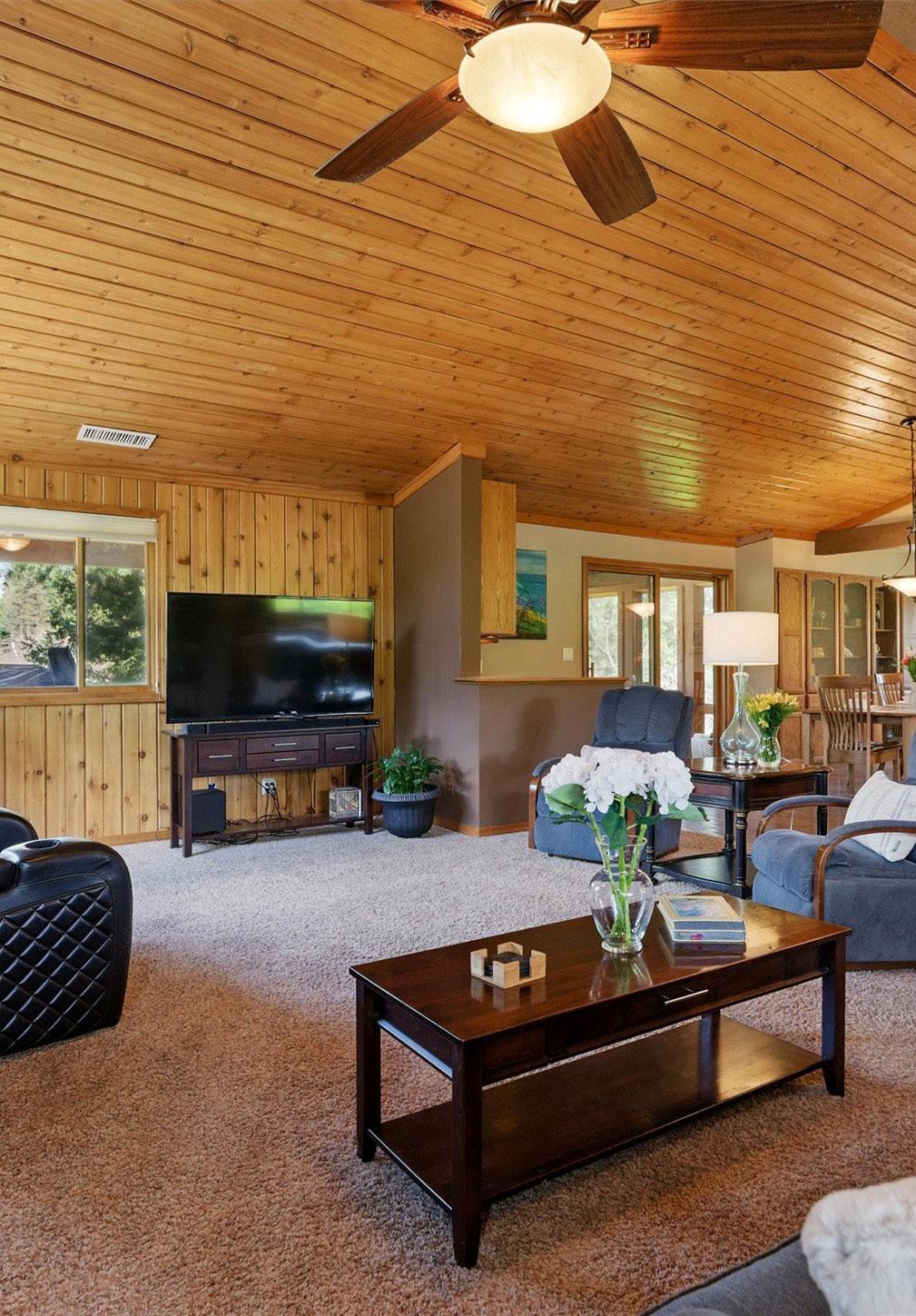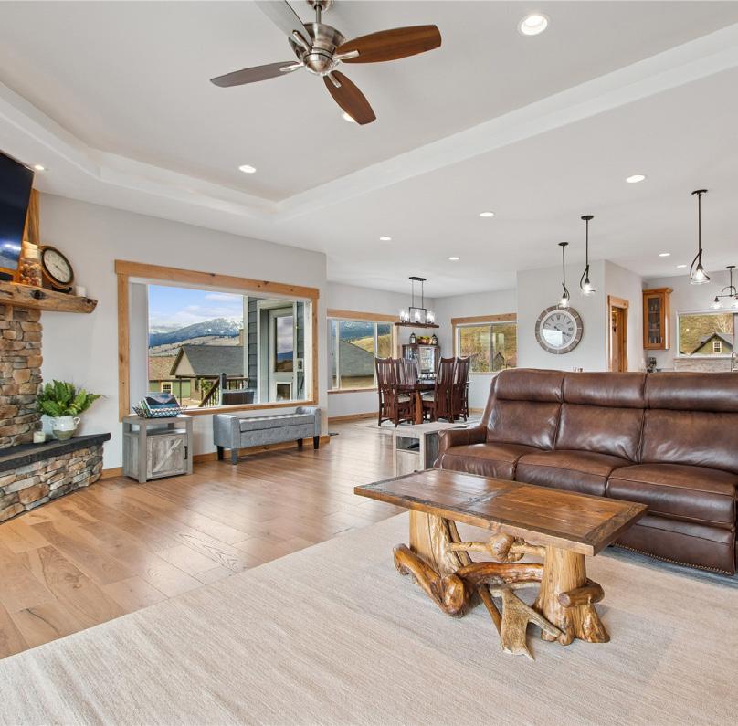 Tucked at the end of a quiet cul-de-sac in Missoula’s prestigious Ranch Club community, this home offers elegant Montana living with stunning golf course and mountain views. This 4-bedroom, 3-bath home spans 3,440 sq ft and features a bright, open floor plan with vaulted ceilings, engineered wood floors, and a beautifully finished kitchen.