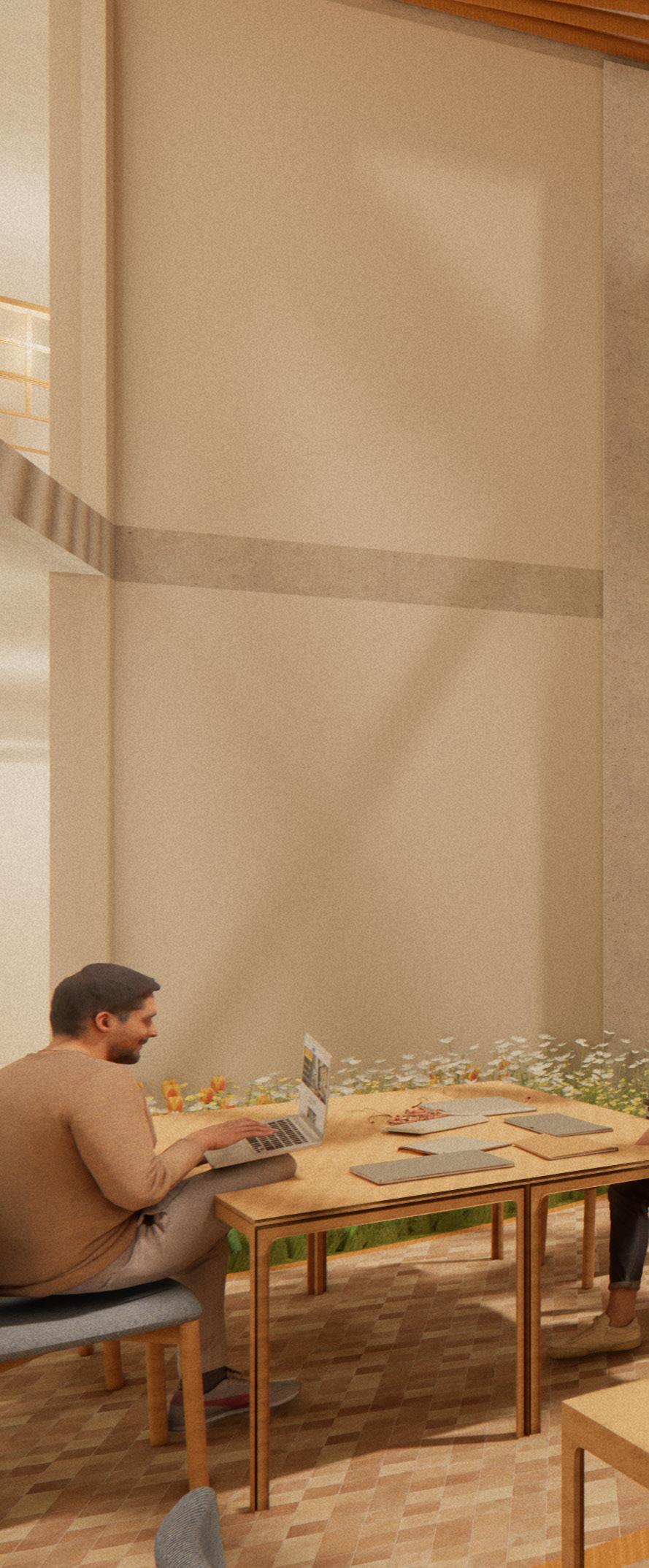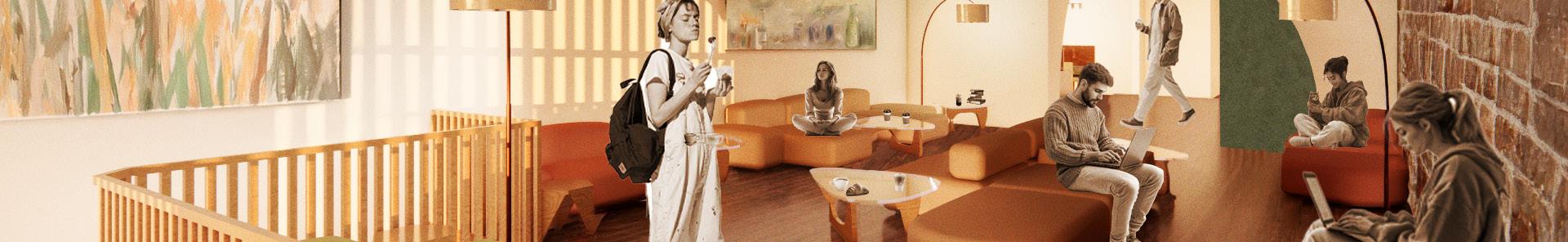 The House of Medici reimagines the campus coffee shop as a neighborhood living room, a place where students can gather, linger, and build community through comfort and familiarity. Rooted in Medici’s artisanal identity, the design blends industrial Austin accents with warm textures and soft material palettes to create a domestic atmosphere that feels both curated and lived-in. Modular seating, textile-based privacy strategies, and gentle spatial thresholds shape a series of “living rooms” that support study, conversation, and casual interaction while preserving an overall sense of openness and connection.