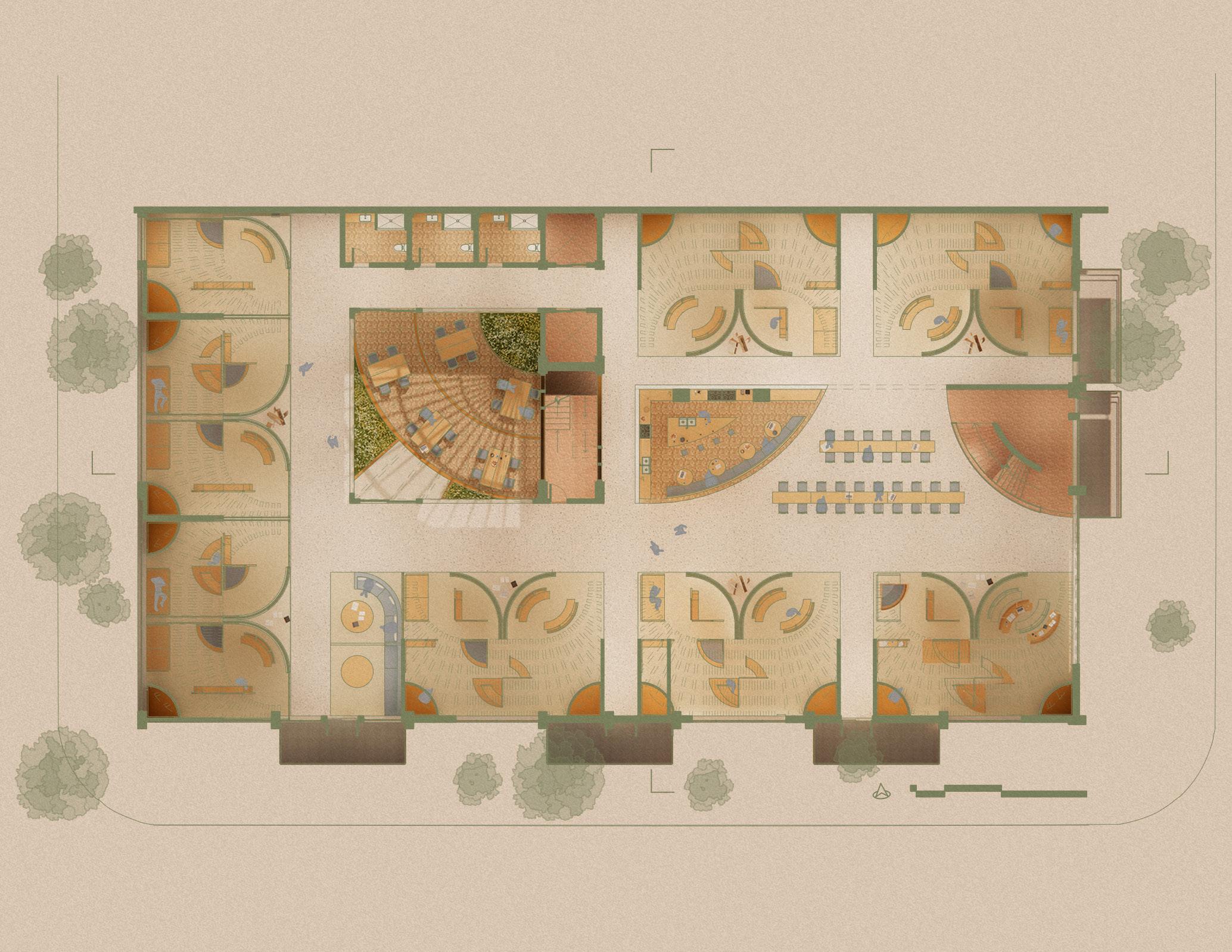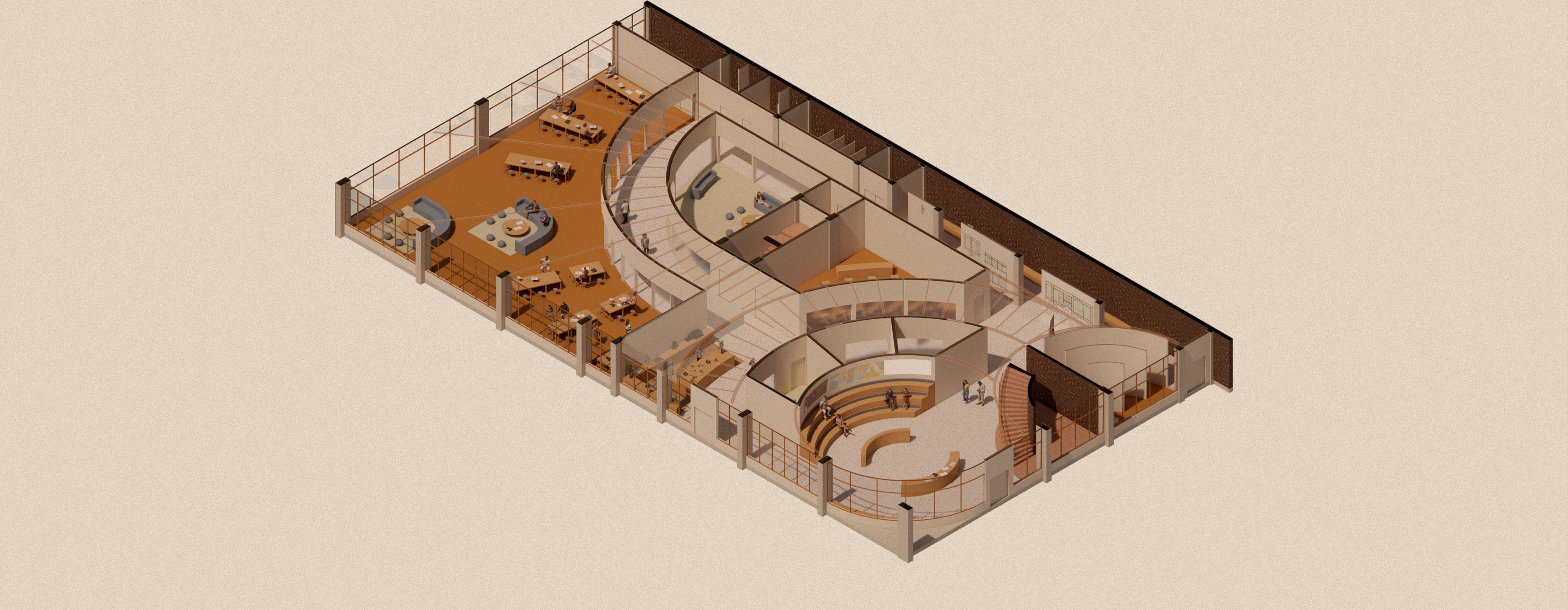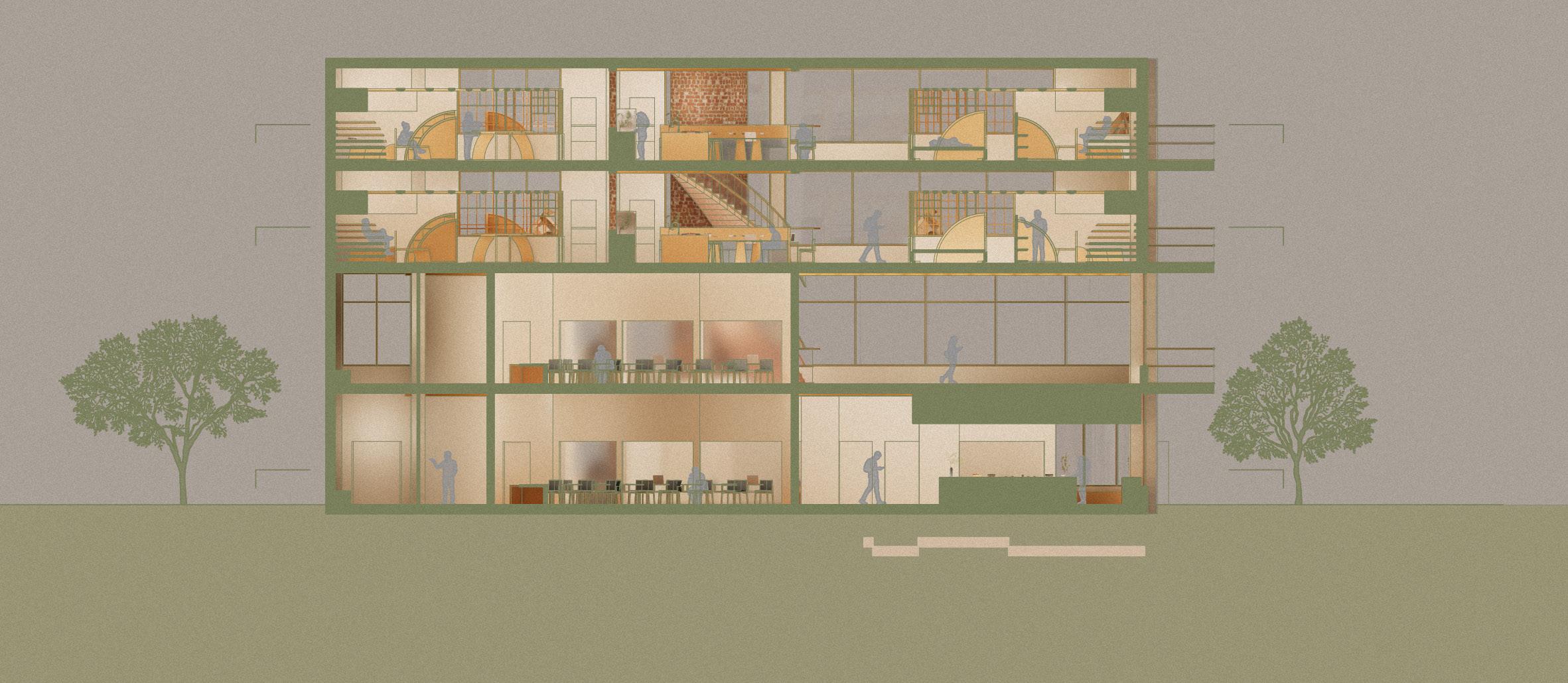 This project offers a new model of student housing built from gradients rather than boundaries, using curvature and operable surfaces to flex between solitude and social connection. The architecture becomes a catalyst for community, an environment where the rhythms of living and learning are guided by the soft pull of form and the synaptic exchange of student life.