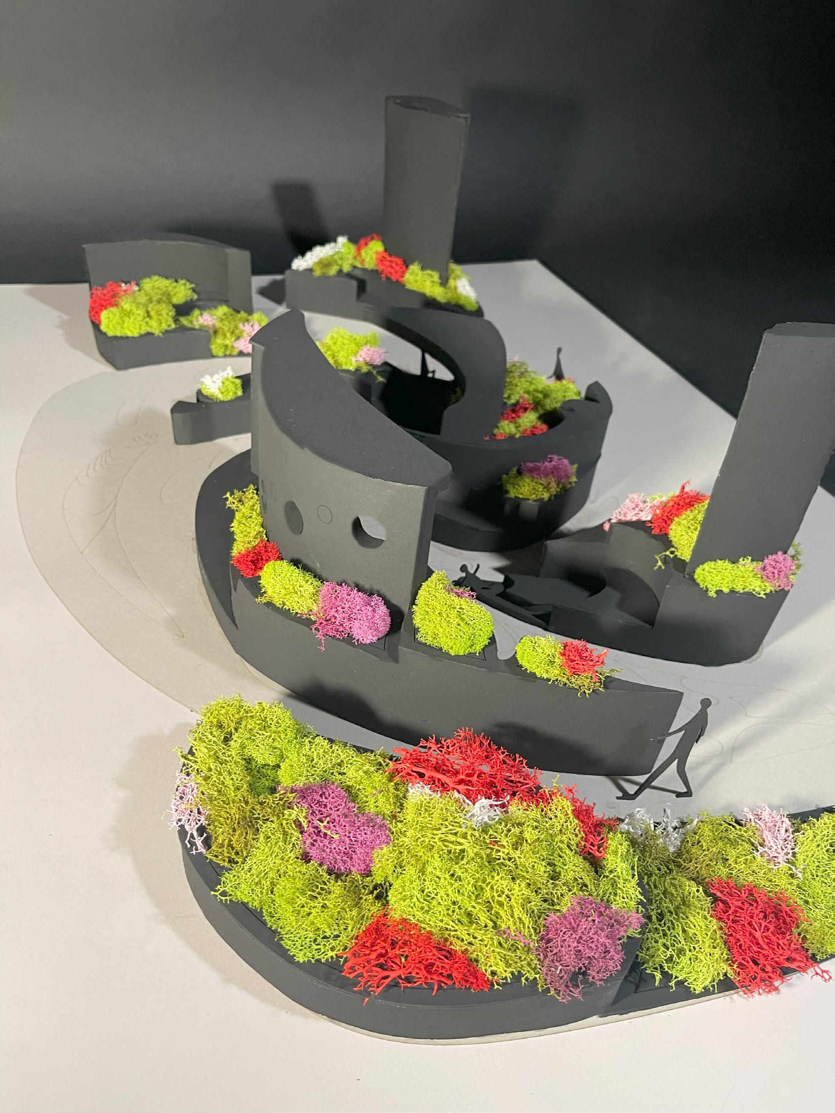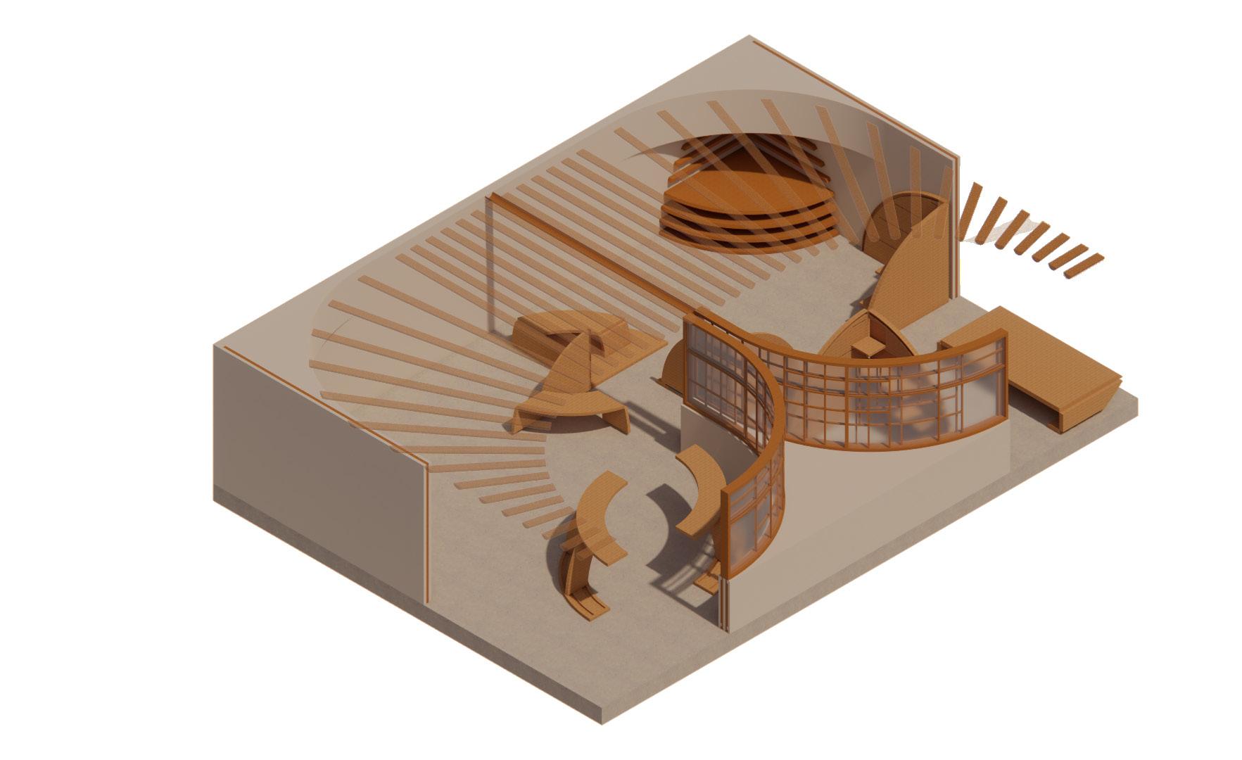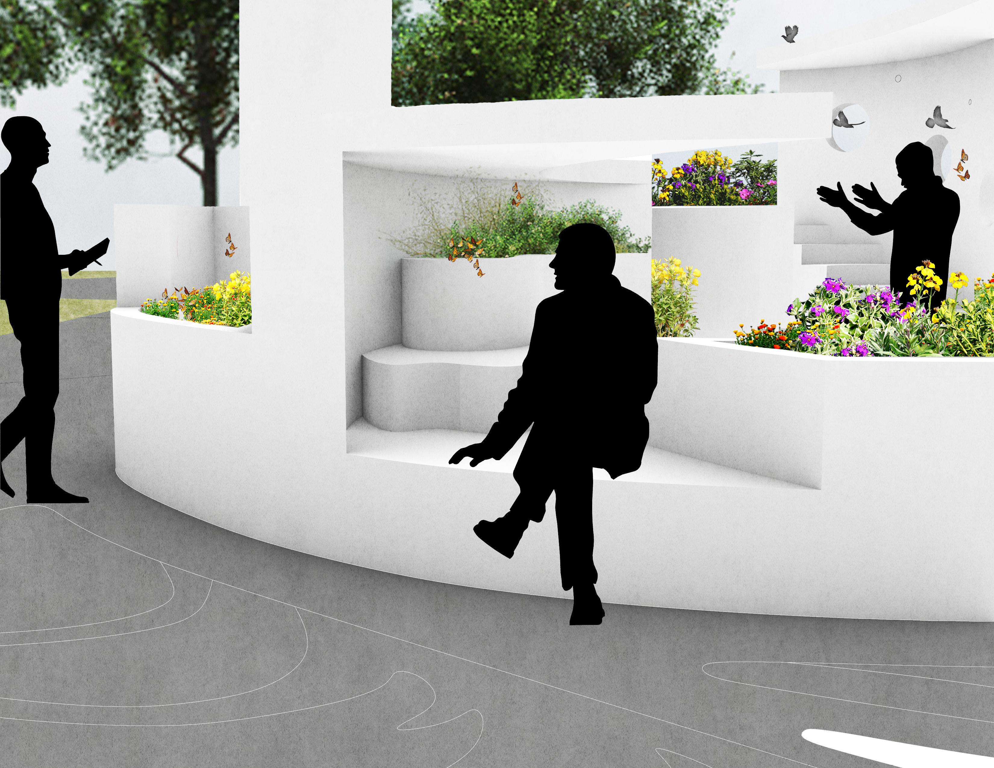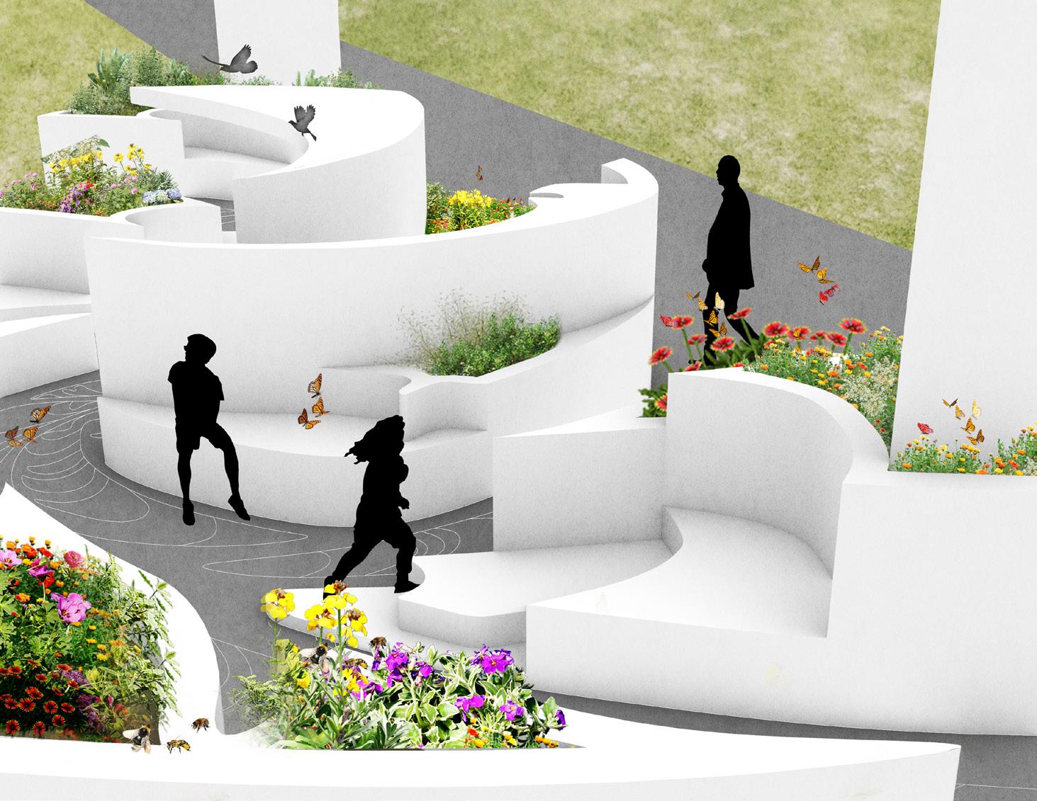 The Pollinator Lounge is designed as a shared habitat within the Brooklyn Botanic Garden, bringing attention to the importance of winged species through rest and observation. Tiered seating creates a moment of isolated attention, allowing occupants to nest within plant, insect, and bird life without disruption. By framing insects as neighbors rather than pests, the project celebrates plant–pollinator relationships and proposes opportunities for seclusion, education, and play within Oak Circle for a range of species and users.