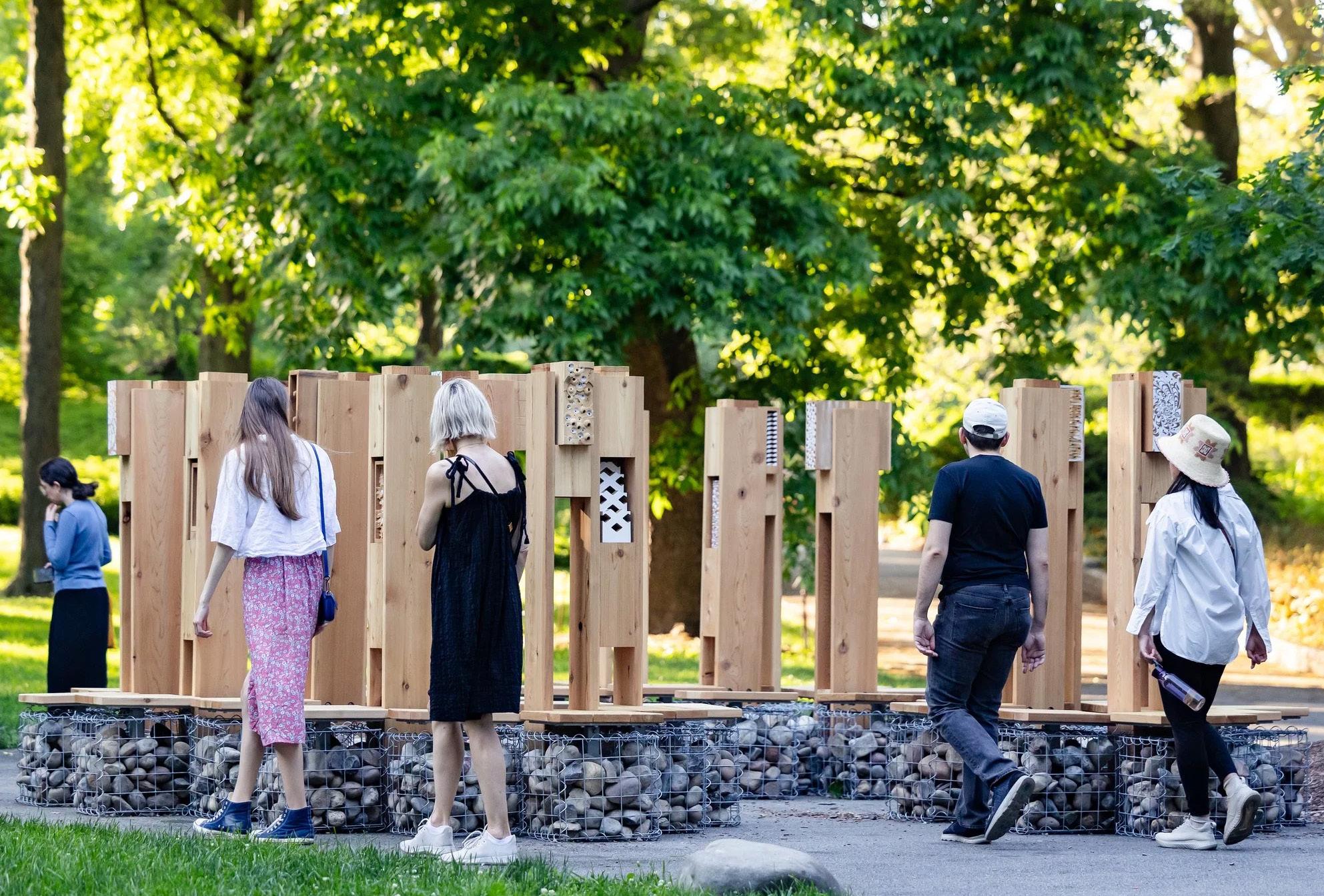 The project was exhibited at BBG from May to October 2024 and contributed to a collaborative publication process with students from the University at Buffalo. Guided by exhibition designers, the studio fabricated live, on-site pollinator habitats, evolving from real habitat studies to speculative design proposals. The exhibition attracted hundreds of visitors and was recognized in Time Out’s Top 25 Best Things to Do in NYC in Summer 2024, underscoring the role of design in urban ecological advocacy.