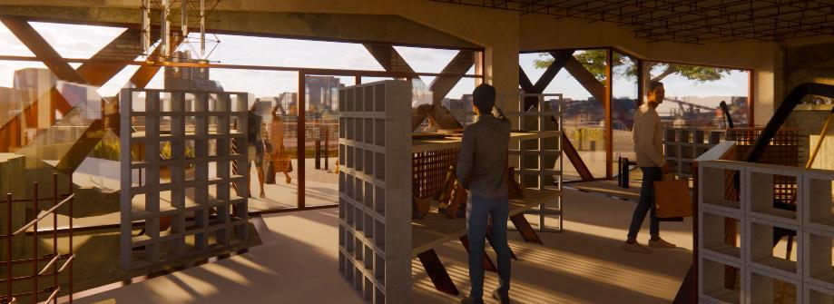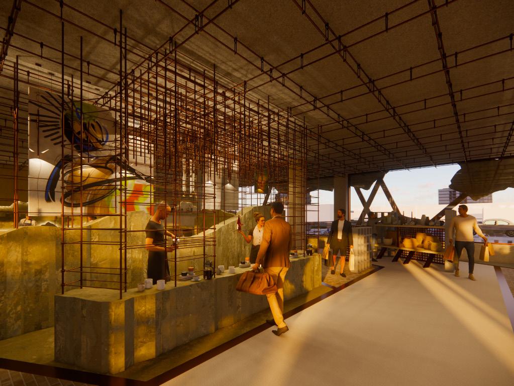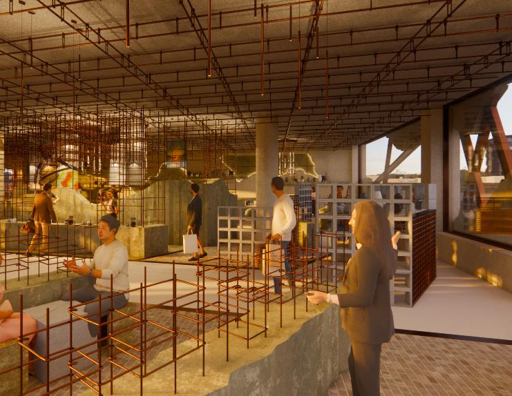 This project reimagines an East Austin site as a hybrid workshop and retail environment that amplifies the neighborhood’s legacy of labor, minority culture, and craft-based industry. Surrounded by concrete and oil warehouses, the design embraces the area’s industrial character rather than smoothing it over. Exposed concrete, salvaged warehouse fragments, and visible systems of assembly shape a space that acts as both a living ruin and a material study, reflecting the texture and honesty of East Austin’s built environment.