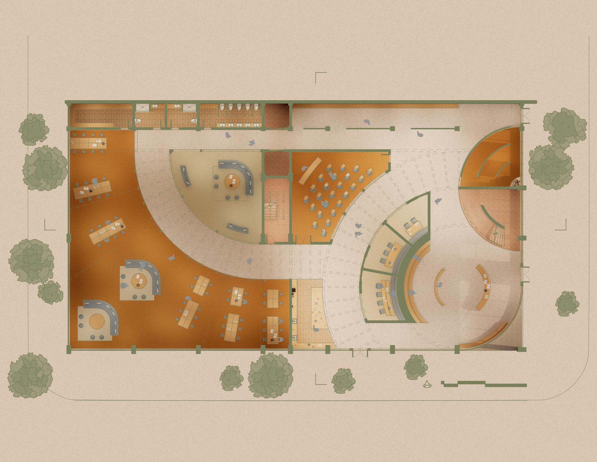 Functional issues with the original site motivated a redesign that prioritizes improved lighting, clearer circulation paths, and more controlled acoustics, ensuring that the space supports both the social rhythms of a campus cafe and the intimacy of a neighborhood living room. The resulting proposal unites home-like comfort with purposeful functionality, crafting an environment that strengthens Medici’s evolving identity while truly serving the needs of students.