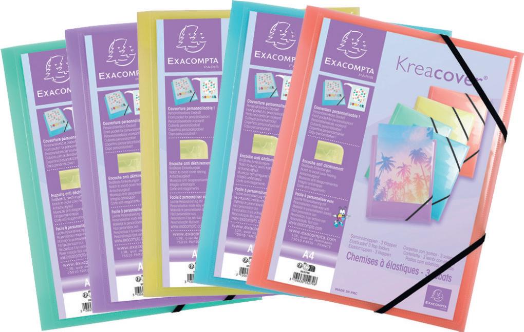 Paquete de 10 subcarpetas rígidas 210 g/m² - 24x32 cm para A4. Colores surtidos : Azul - Frambuesa - Gris - Habano - Limón - OcreRojo - Rosa - Verde - Violeta.