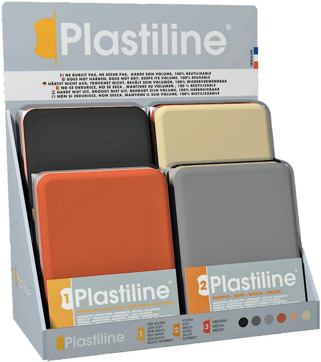 DE Plastiline® ist eine eingetragene Marke aus dem Jahr 1989. Seit Januar 2021 gehört sie zum Unternehmen Clairefontaine Rhodia. Seit jeher wird es in Frankreich hergestellt. Plastiline® ist eine ungiftige Modelliermasse. ie ist schwefelfrei und gebrauchsfertig. Ihre Präzision bei der Reproduktion ist auf 1/10 mm genau. Sie hat eine exzellente Stabilität und behält ihr Volumen. Bei der Realisierung von Modellen ist keinerlei Deformation der Masse zu befürchten. Eine Besonderheit ist auch, dass Plastilin niemals an der Luft trocknet.
