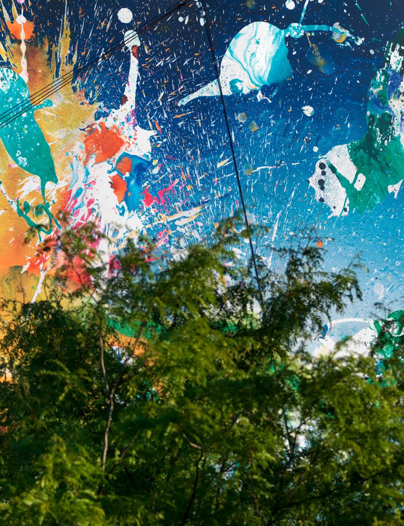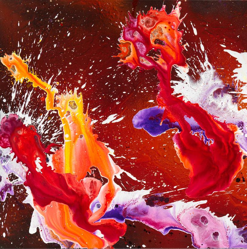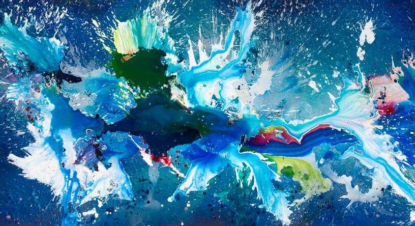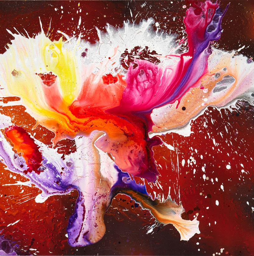 Inoltre, energici flussi di colore, schizzi potenti e gesti apparentemente spontanei e ariosi formano un’emo zionante simbiosi in un dialogo tra spontaneità, spe rimentazione e calcolo artistico, unendosi per formare poetici mondi cromatici e pulsanti che trascinano lo spettatore in un cosmo di colori ed emozioni.