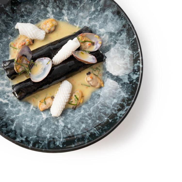 È qui che ha creato i suoi due piatti preferiti: i cannelloni di seppia e la sella d’agnello cotta nell’argilla. E come non enfatizzare il ruolo di Josiane Morisset, musa se greta dello chef, sempre disponibile, sempre entusia sta, pronta ad affrontare in modo originale e attento tutte le situazioni che si possono presentare in sala, di cui Josiane cura la supervisione. E ancora, che dire di Matthias, con un’alta formazione pasticcera ma capa ce di destreggiarsi in cucina.