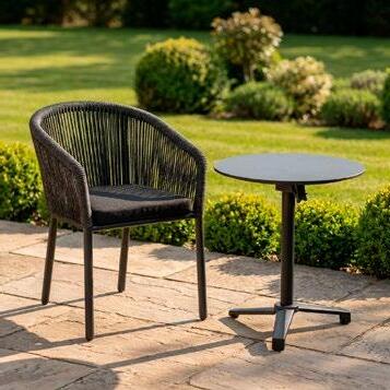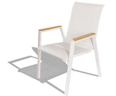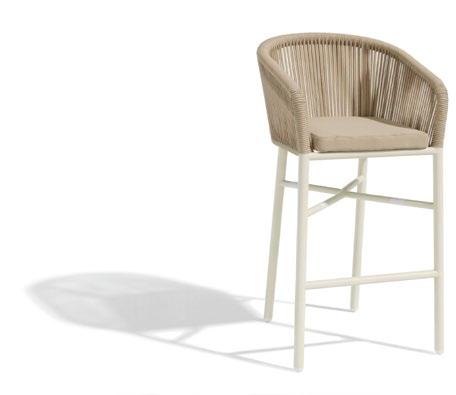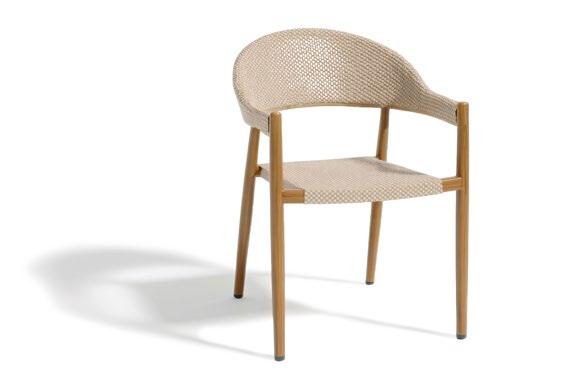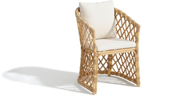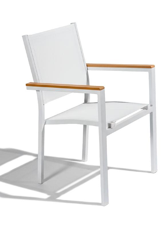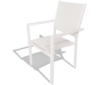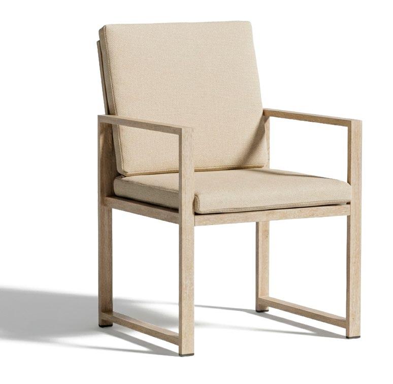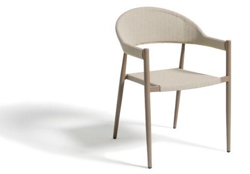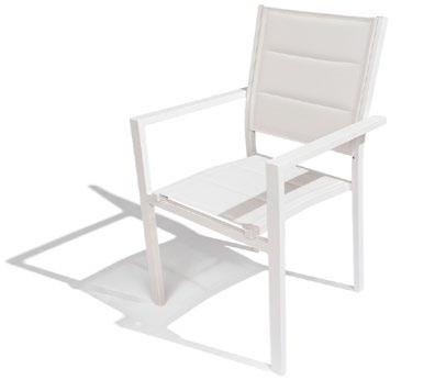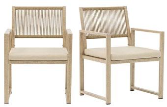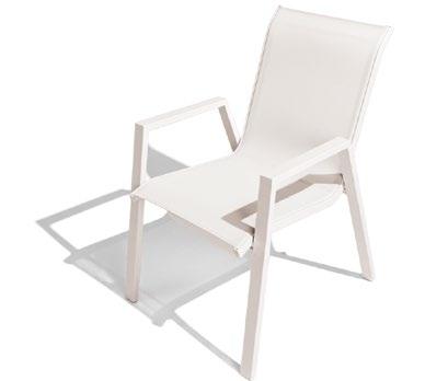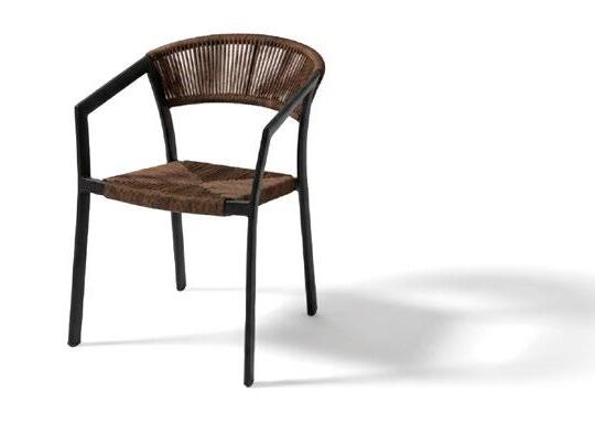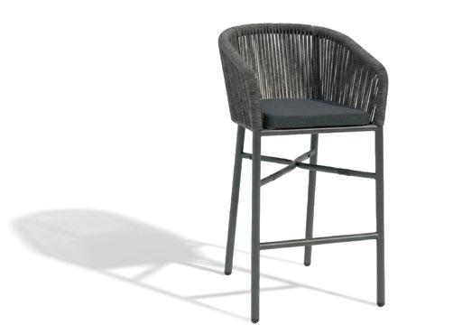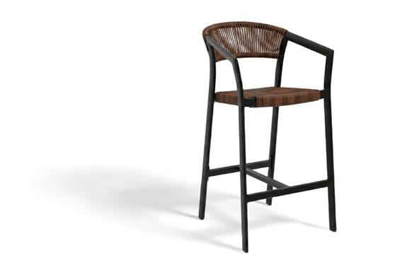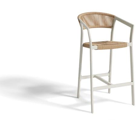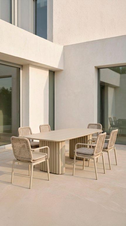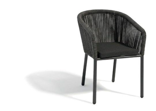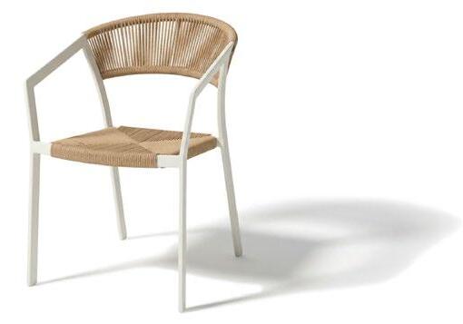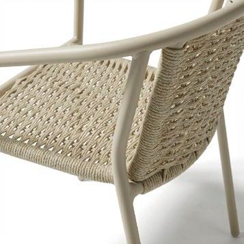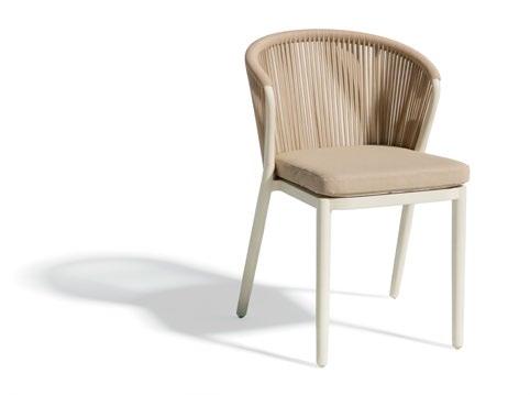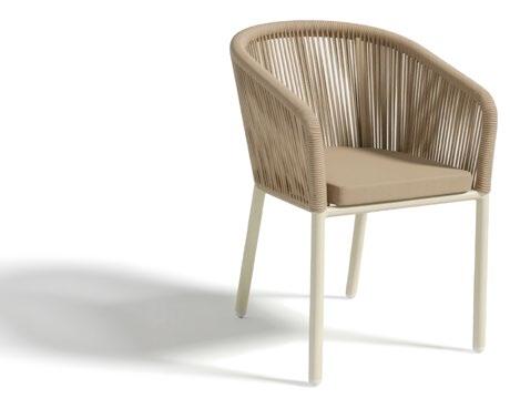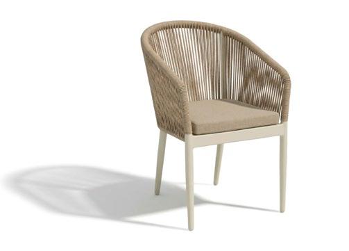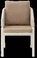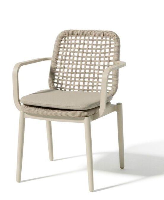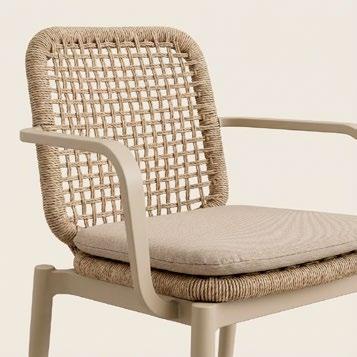 Cadeira outdoor com estrutura em alumínio e detalhes em corda que proporcionam uma estética natural e leve. Seu design reto e moderno oferece estabilidade, enquanto as almofadas proporcionam conforto no assento e encosto. Uma peça versátil e resistente, ideal para terraços e salas de jantar ao ar livre.