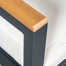 Material: Alumínio com pintura eletrostática a pó, detalhes com efeito madeira, vidro temperado estampado e almofadas em poliéster.