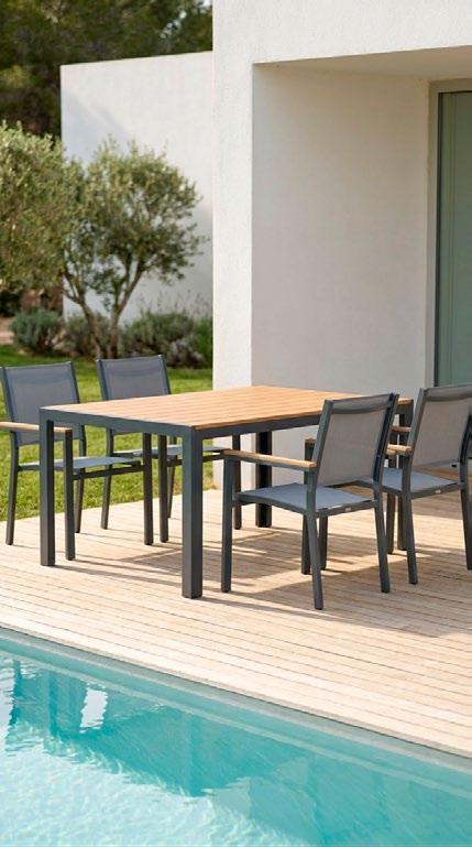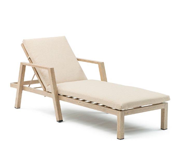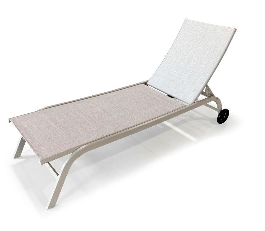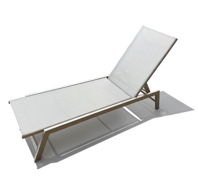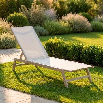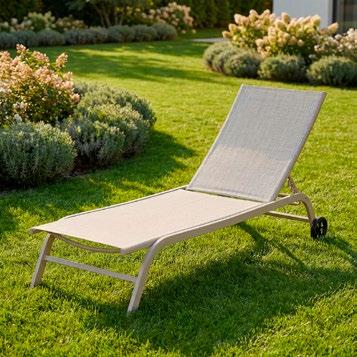 Espreguiçadeira de exterior em alumínio, um material leve, resistente e de fácil manutenção.