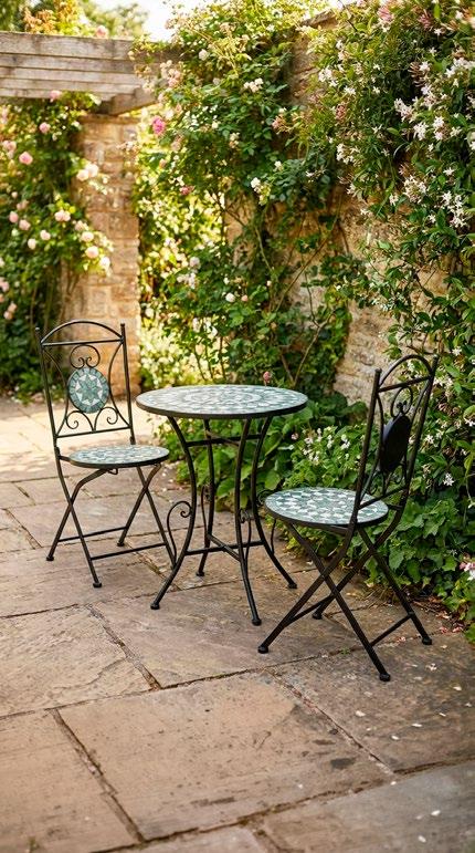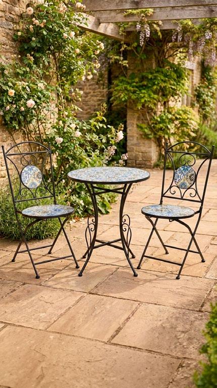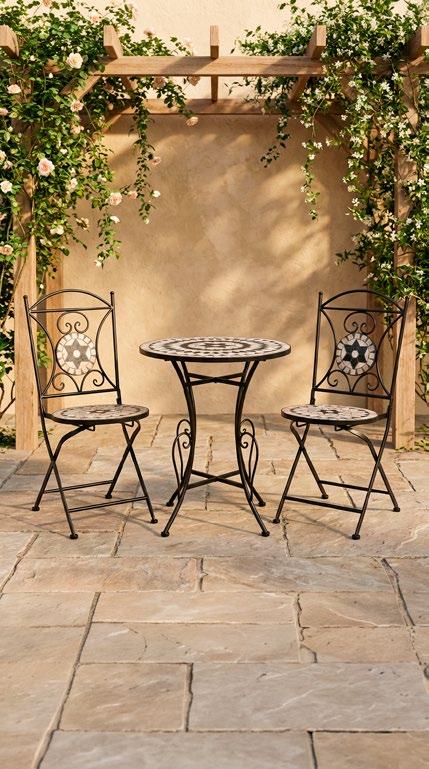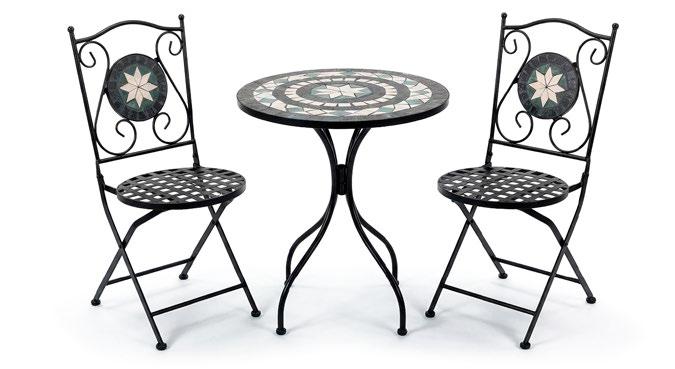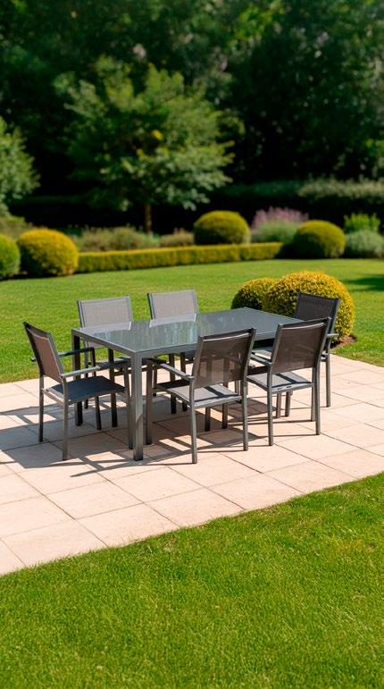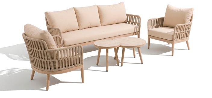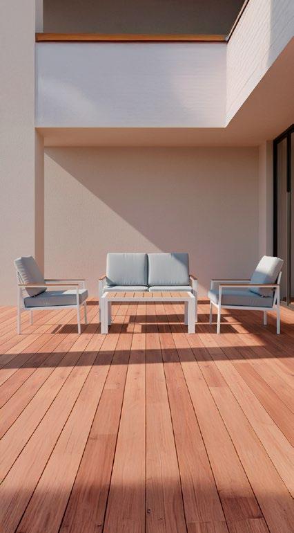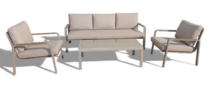 Cadeiras: 75x85x75cm. Sofá: 165x85x75cm. Mesa: 90x60x44cm. 16 • Conjunto de exterior Coleção de exterior