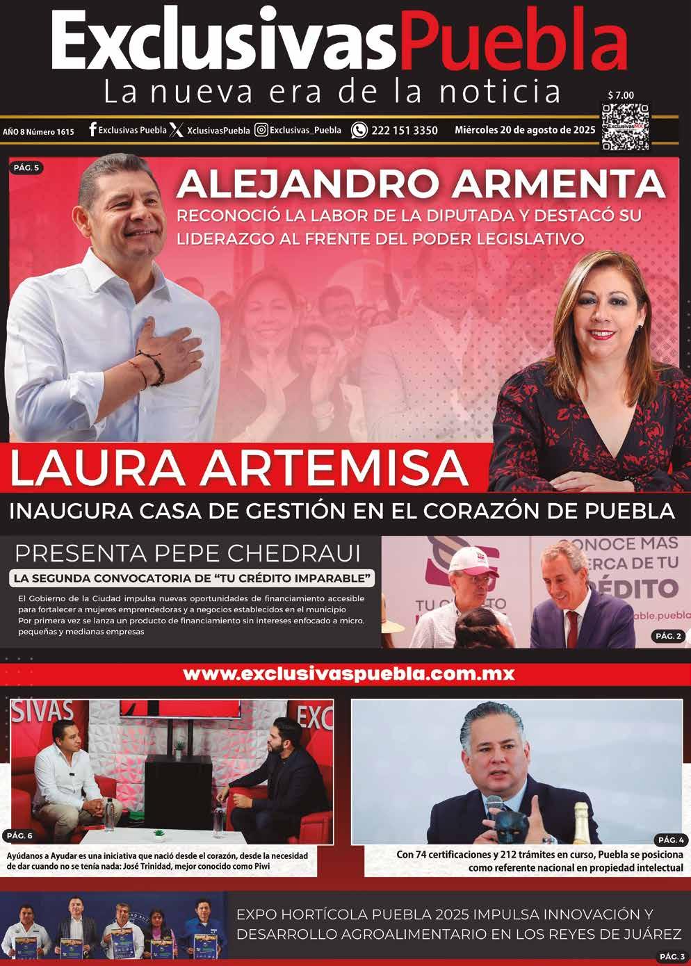 Exclusivas Puebla se publica de lunes a viernes con un tiraje de 5 mil ejemplares diarios. www.exclusivaspuebla.com.mx Teléfono de oficina y ventas: 22 11 61 67 54