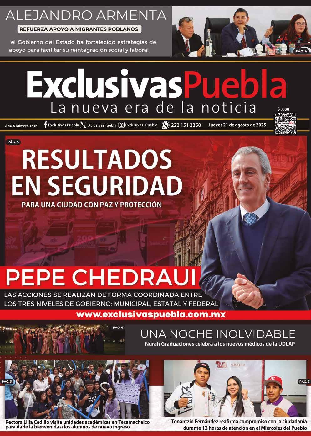 Exclusivas Puebla se publica de lunes a viernes con un tiraje de 5 mil ejemplares diarios. www.exclusivaspuebla.com.mx Teléfono de oficina y ventas: 22 11 61 67 54