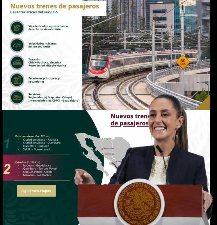 Querétaro-Irapuato, la cual lleva un avance del 93 por ciento y del tren Saltillo-Nuevo Laredo con un progreso del 97 por ciento.