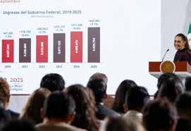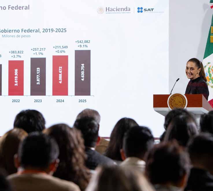 De enero a septiembre de 2025, los ingresos del Gobierno Federal ascienden a los 4.6 billones de pesos; 9.1 por ciento más en términos reales si se compara con el mismo periodo de 2024 y se espera que a diciembre de este año sea de casi