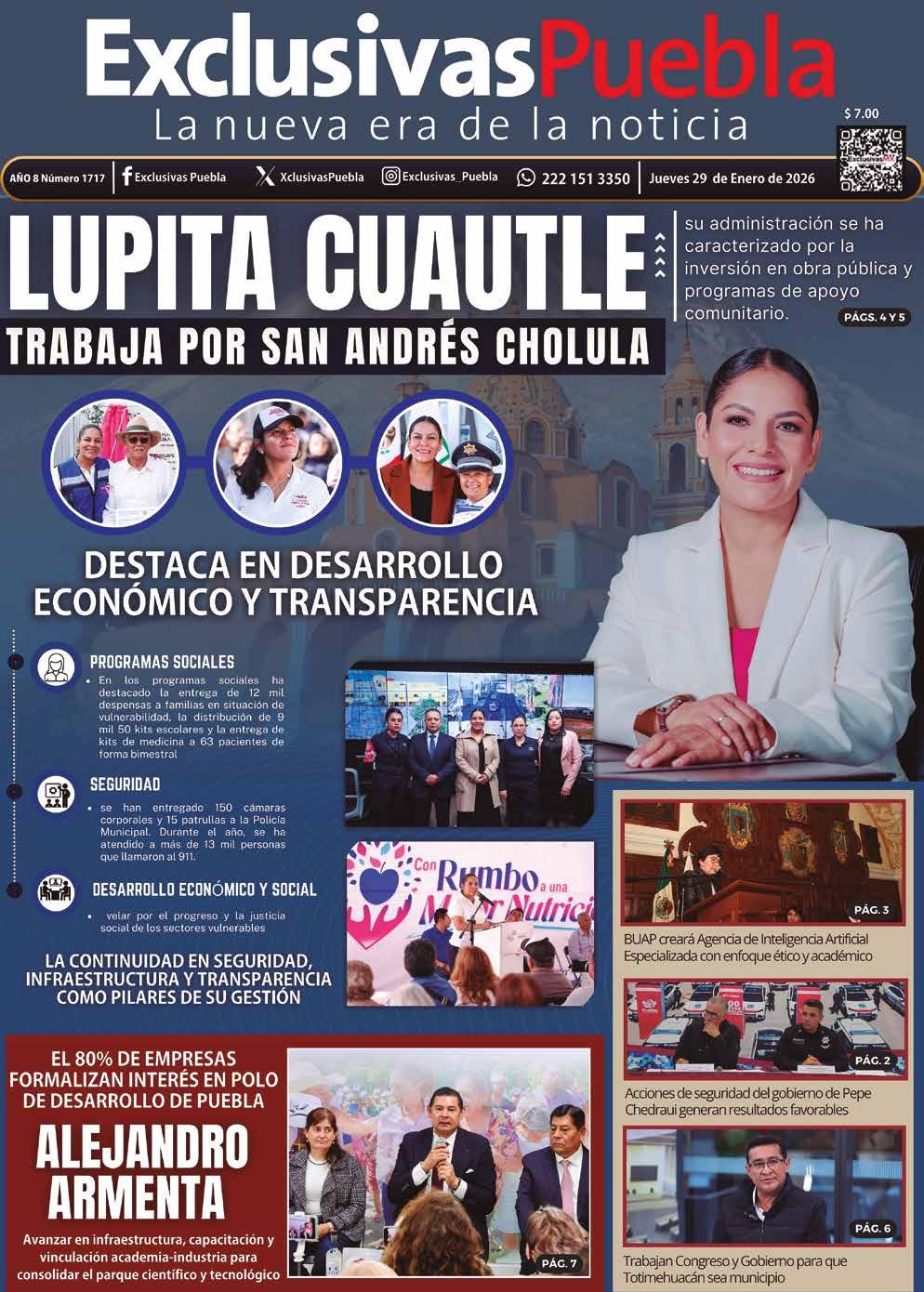Exclusivas Puebla es un medio de comunicación independiente en su línea editorial y no acepta como suyas las ideas de artículos firmados. Queda prohibida la reproducción parcial o total de la presente edición. Número de Certificado de Reserva otorgado por el Instituto Nacional de Derechos de Autor: en trámite. Número de certificado de Licitud de Título en Trámite. Número de Certificado de Licitud de Contenido: en trámite. Inscripción ante el Padrón de Medios Nacionales impresos en trámite.
