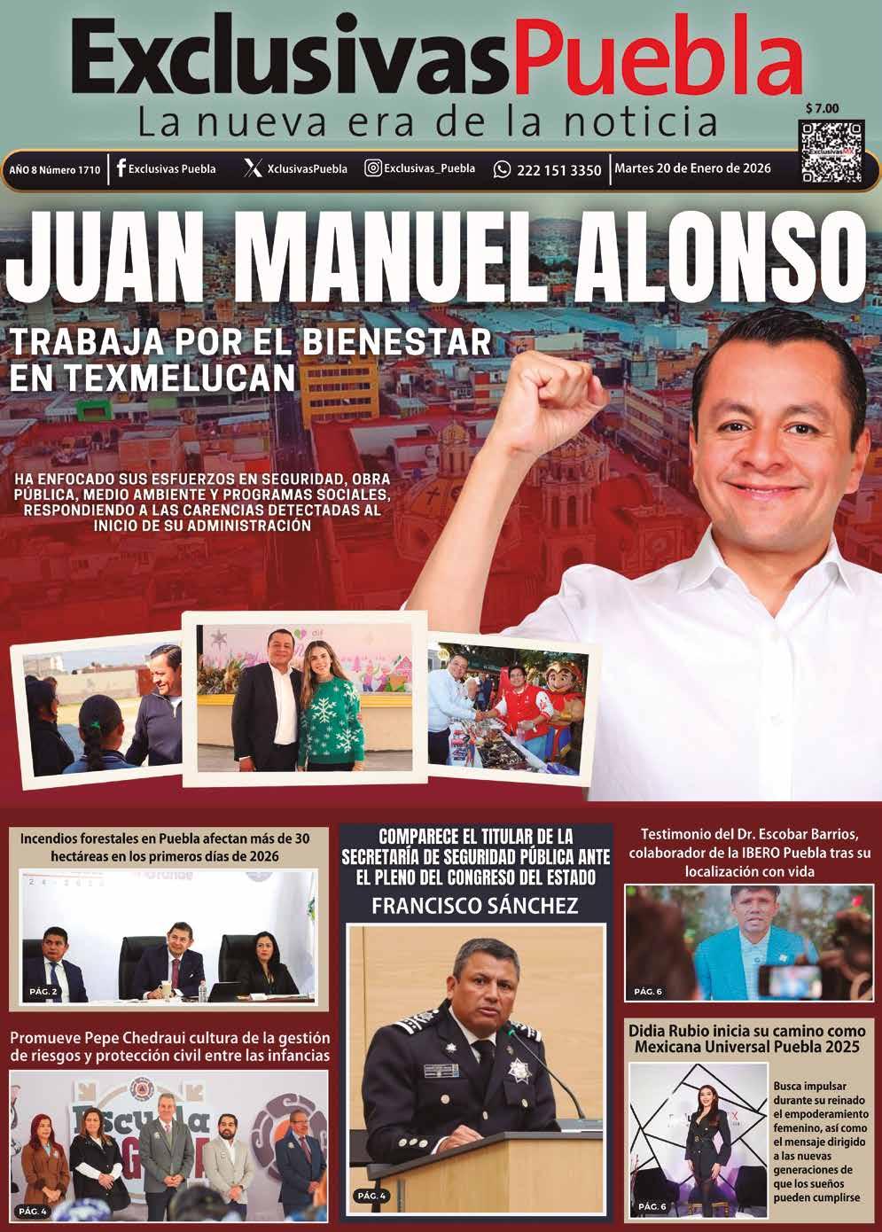 Exclusivas Puebla se publica de lunes a viernes con un tiraje de 5 mil ejemplares diarios. www.exclusivaspuebla.com.mx Teléfono de oficina y ventas: 22 11 61 67 54