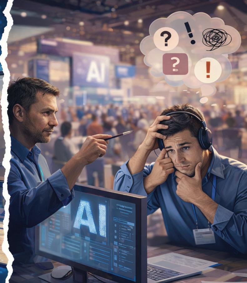 In psychology, it describes the mental discomfort of holding two conflicting beliefs. In our industry right now, it describes the gap between the polished fantasy of Artificial Intelligence (AI) and the sweaty, chaotic reality of a tradeshow floor.