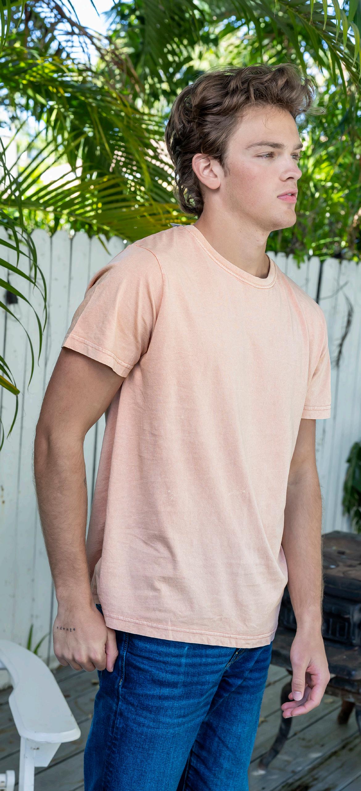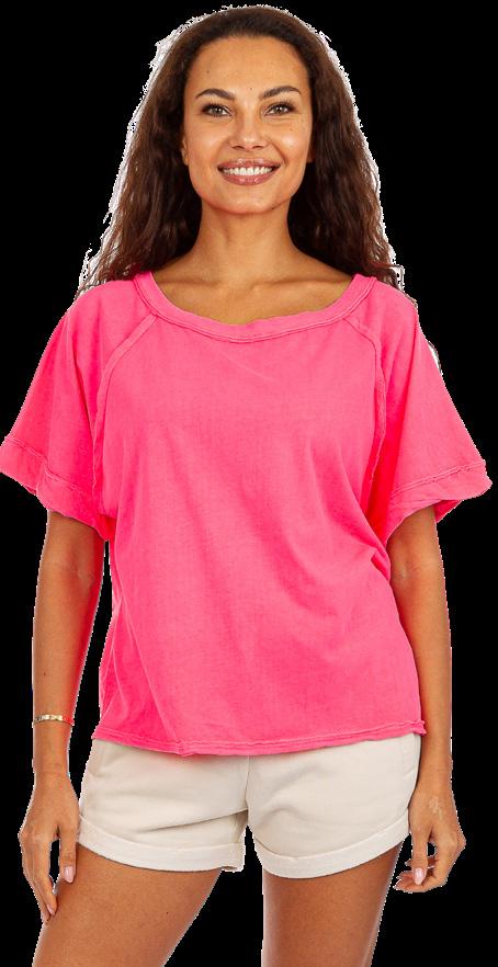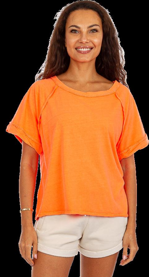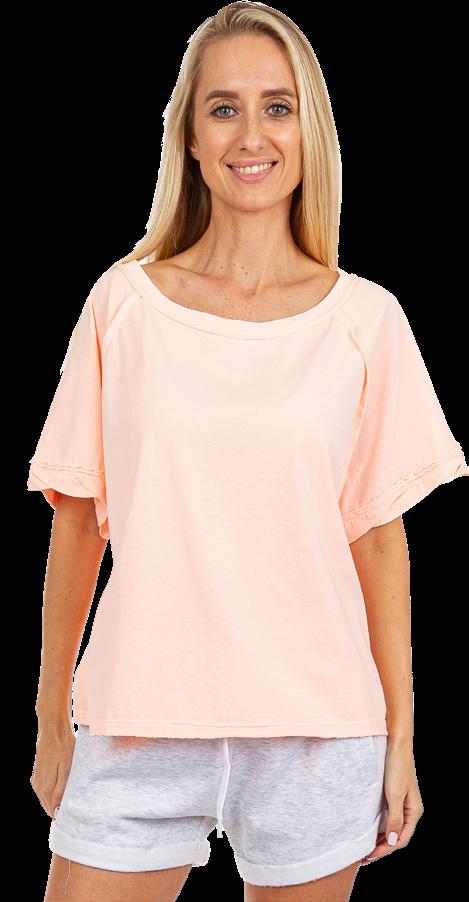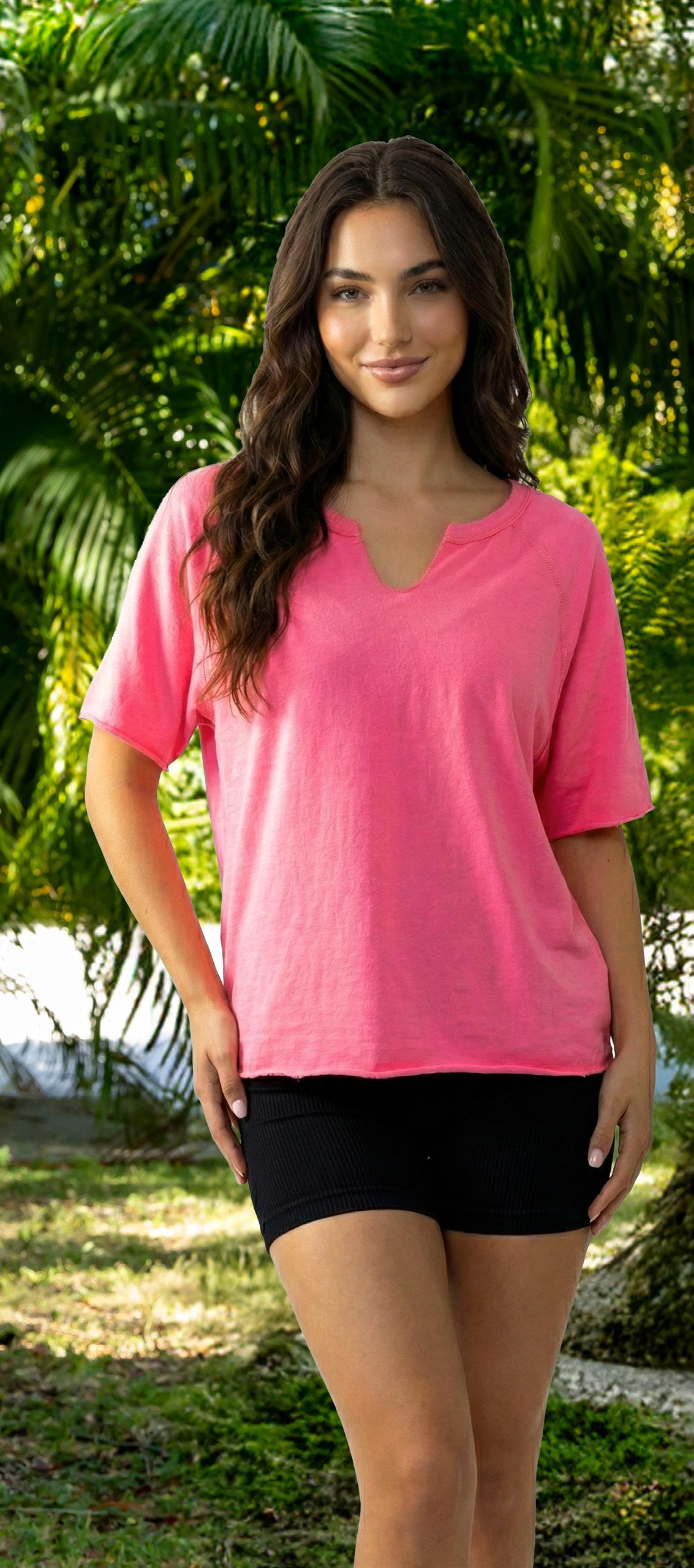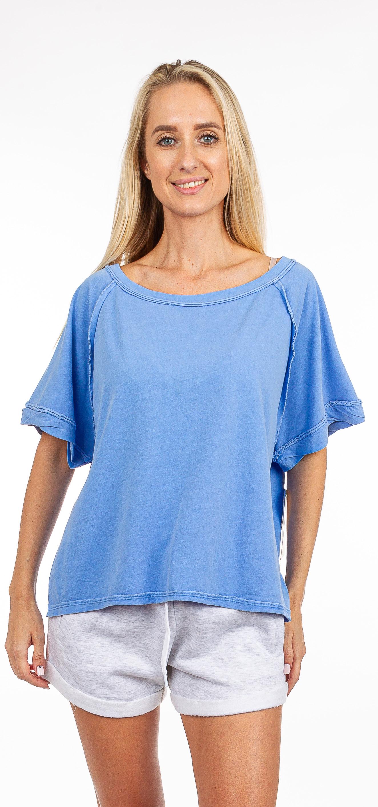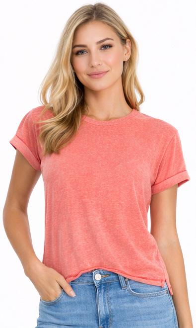 GARMENT DYE RAW EDGED SHORT SLEEVE TOP