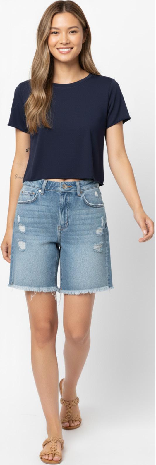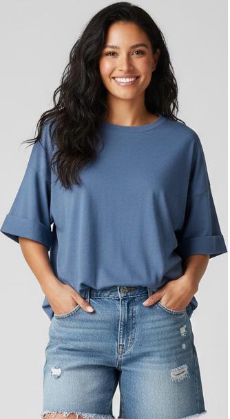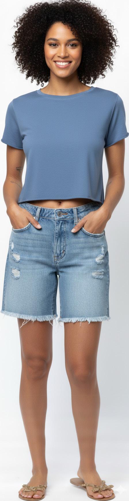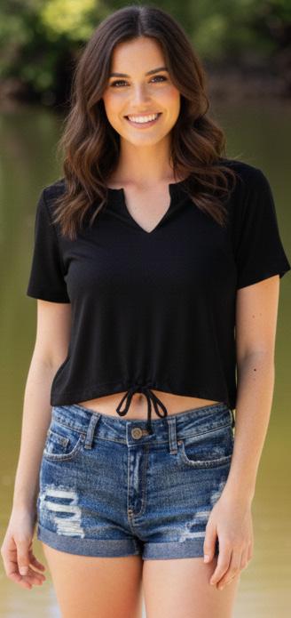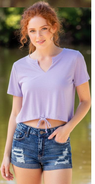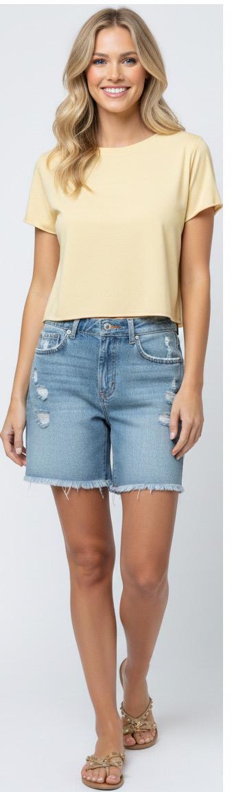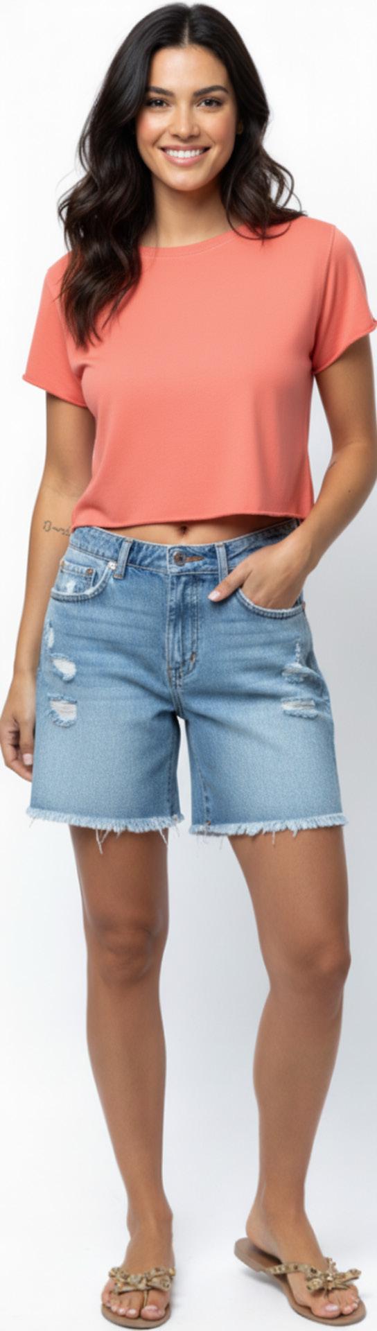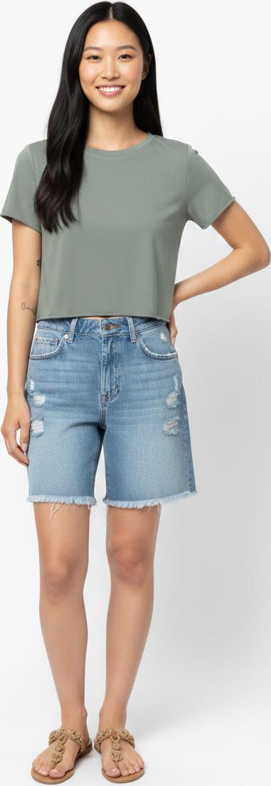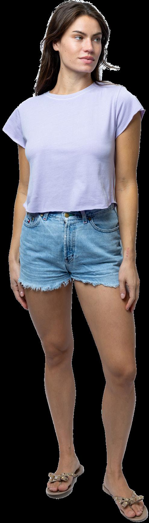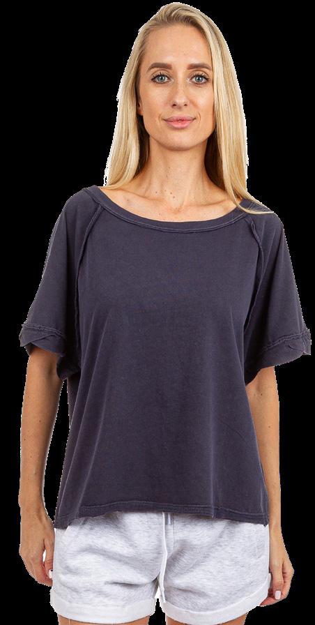 GARMENT DYE RAW EDGED SHORT SLEEVE TOP