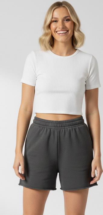 RIBBED SHORT WITH ELASTIC WAISTBAND AND DRAWSTRING