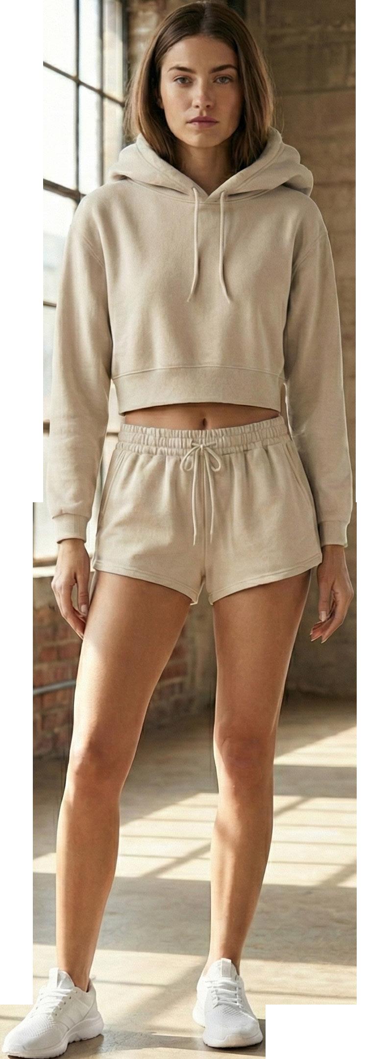 DOUBLE WAISTBAND DRAWSTRING SHORT SET