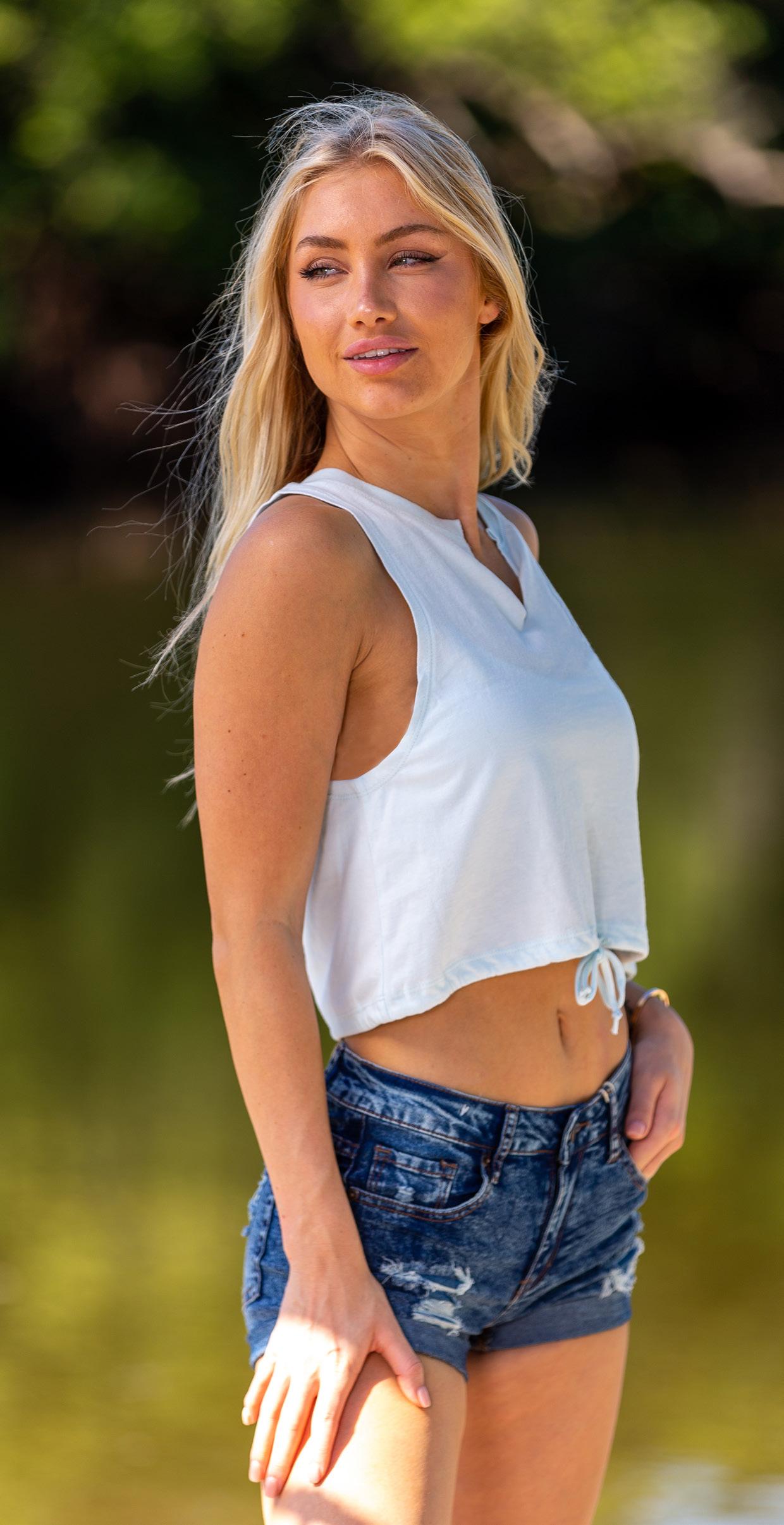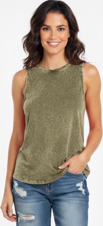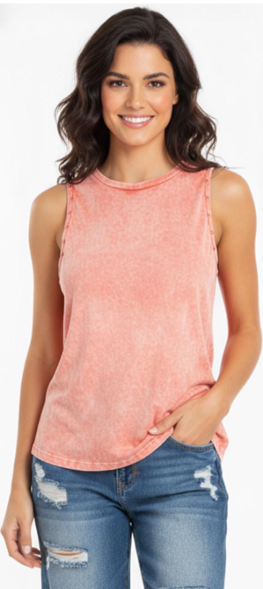 PEACHED FINISH TANK TOP WITH FRONT TIE