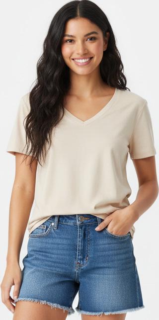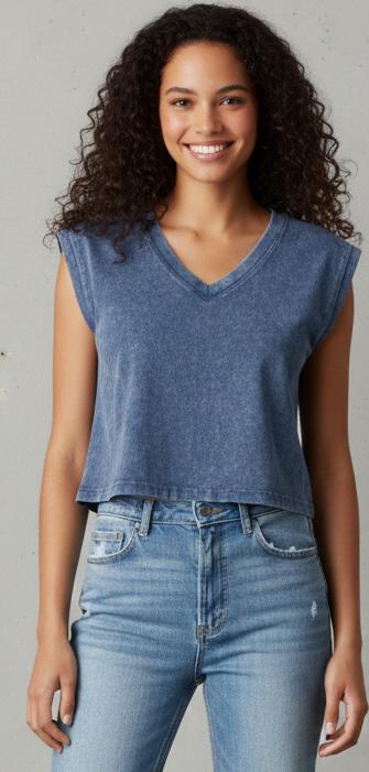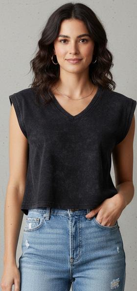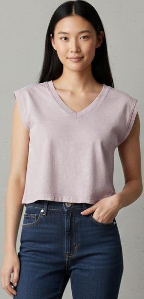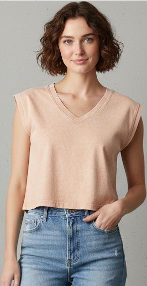GARMENT DYE V-NECK SHORT SLEEVE TOP