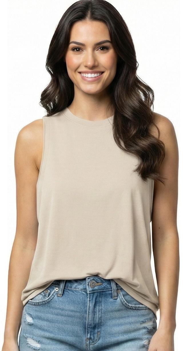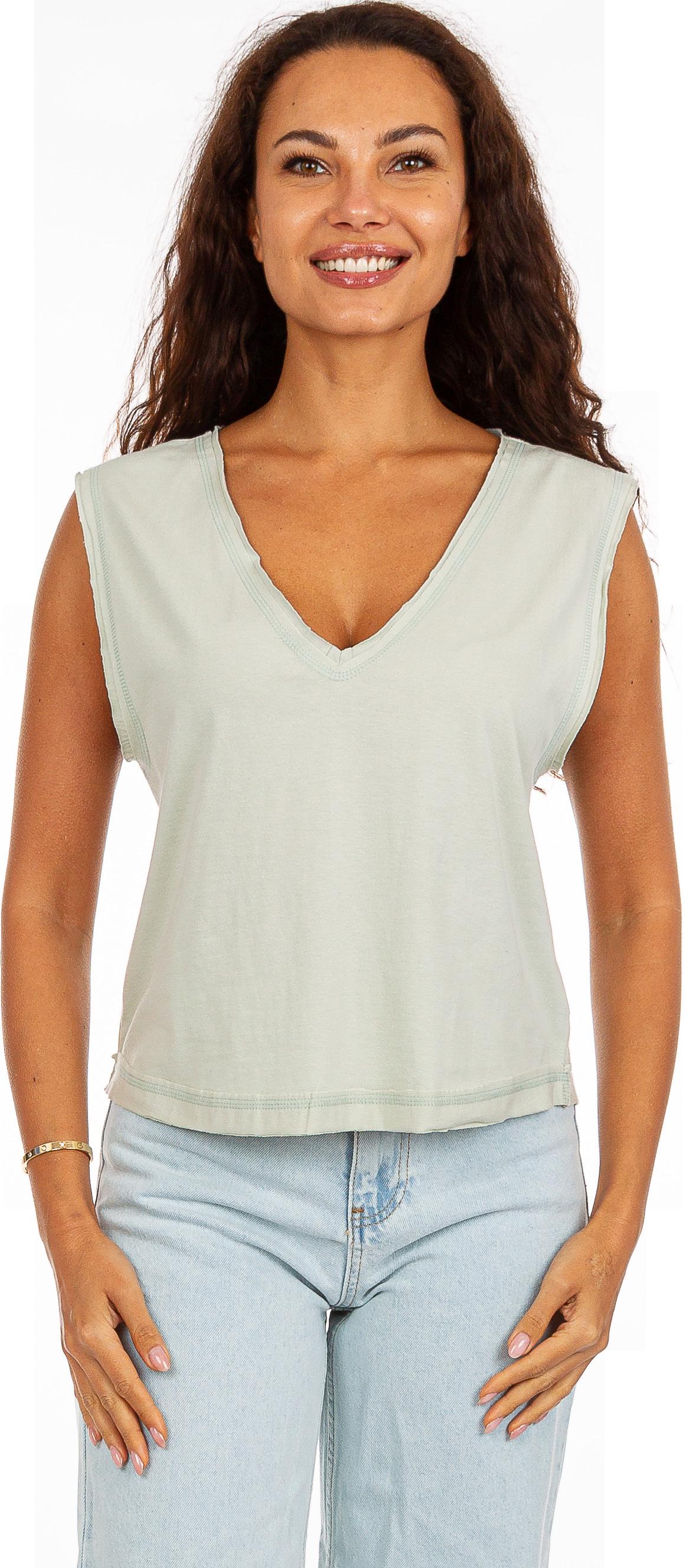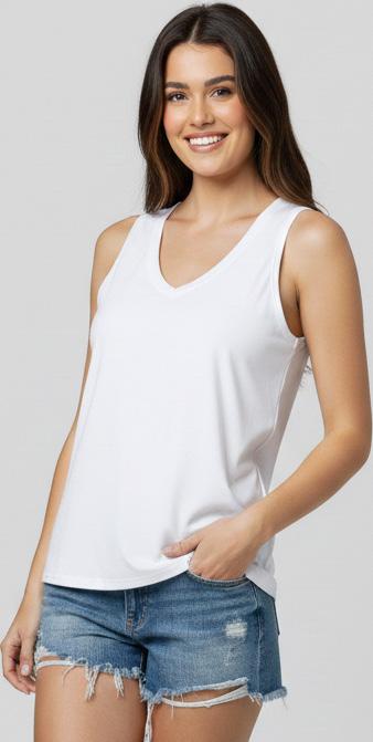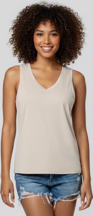 PEACHED FABRIC SLEEVELESS V-NECK TANK TOP