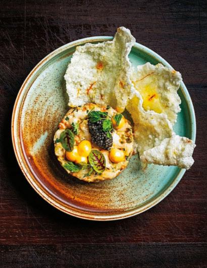 La distincin de Lasarte se puede atestiguar en la dorada con rag de caracoles, berberechos y caldo de cangrejo sobre crema de pistachos y ans estrella. / Lasartes distinction can be witnessed in its sea bream with snail ragout, cockles and crab broth on pistachio and star anise cream.