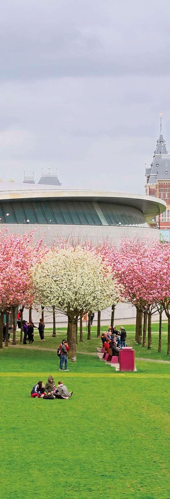 Tulips color the scene, while historic canals flow through the streets of the Dutch capital, that traces its essence between art and culture. p. 16