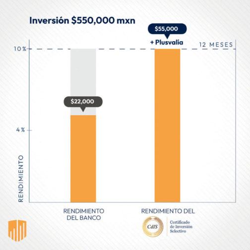 Gracias al éxito de este producto, crearon el Certificado de Inversión Selectivo, el cual consiste en la participación de un grupo selecto de locales en sus plazas comerciales; a través de este modelo de inversión diversificas tu capital, obtienes un alto rendimiento durante el periodo de construcción y al finalizar, recibes un rendimiento sobre el pool de rentas, generando así utilidades de por vida.