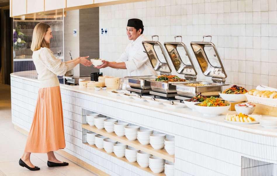 Si te sientes cansado durante tu viaje, el estimulante perfecto para combatir el jet lag es una taza de café árabe acompañada con unos deliciosos dátiles frescos. Las opciones para el almuerzo y la cena incluyen una variedad de platillos internacionales y del Medio Oriente, como un suculento ouzi de cordero o penne all’arrabbiatta al estilo italiano.