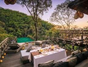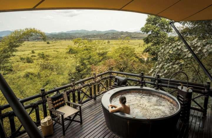 En Chiang Rai, la experiencia es completamente distinta. En medio de la selva, cerca del histórico Triángulo Dorado, Four Seasons Tented Camp Golden Triangle ofrece una propuesta única. Rodeado de ríos, vegetación, este campamento —uno de los primeros de su tipo en el sudeste asiático— combina aventura y conservación con un único fin: vivir una experiencia inolvidable. El diseño, firmado por Bill Bensley, tiene una estética que mezcla lo rústico con lo sofisticado.