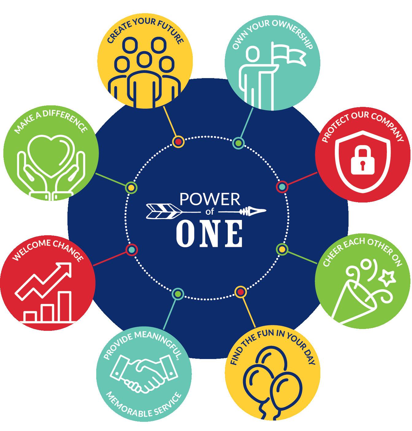We are guided by what we call our Power Of One principles, which are ideas we embrace each day. The Power Of One is the ability of one employee to lean into what they do every day to powerfully impact the business.