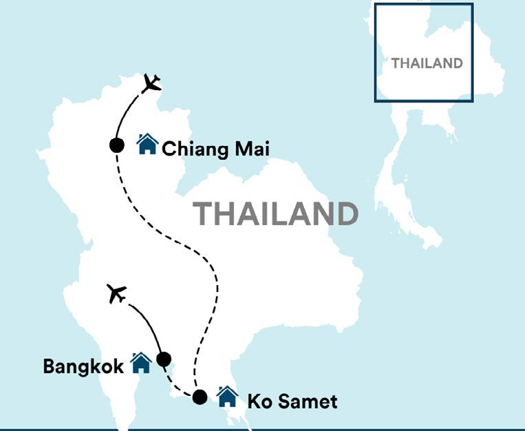 • Take in the sights, sounds and tastes of Thai Culture in 3 cities: Chiang Mai, Koh Samet and Bangkok
