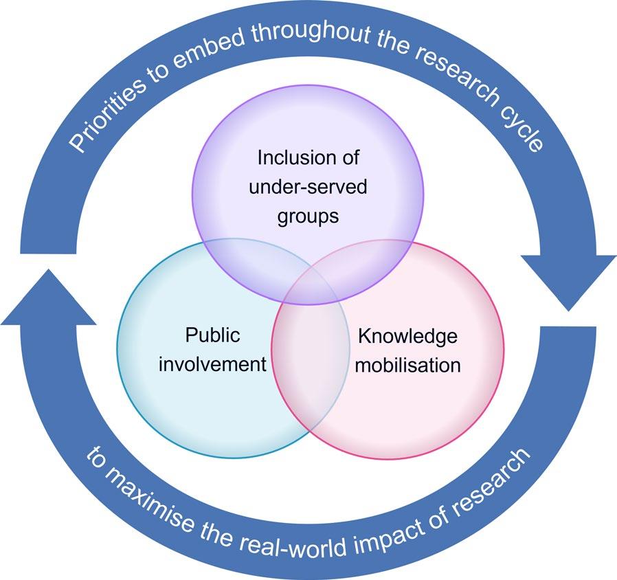 Inclusion of under-served groups, public involvement, and knowledge mobilisation are distinct but inter-related concepts (Fig. 1, Additional File 1). Tey are distinct in having separate principles, standards, and frameworks to guide them. Key areas of overlap are that they should all be embedded throughout the research cycle to maximise the real-word impact of research, be undertaken in a meaningful rather than tokenistic way, and require
