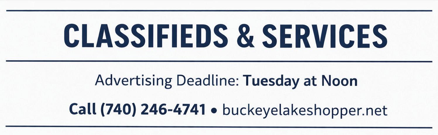 The Buckeye Lake Shopper has been published weekly since 1957. Copy deadline is Tuesday by 12:00 p.m. for the following Wednesday’s paper. Stop in at 14886 St. Rt. 13 NW, Thornville, OH 43076, or call with questions. READ YOUR AD. It is the responsibility of the advertiser to check each insertion of an advertisement. On successive run advertisements no adjustments will be made by The Shopper for errors not corrected after the first day the ad appears. The Shopper accepts no liability or responsibility for failure to insert an advertisement. The Shopper accepts no liability for any error in an advertisement, regardless of cause, except for the cost of the space actually occupied by the error. The publisher reserves the right to edit, refuse or reject without notification any advertisement or news copy for any reason. The publisher shall not guarantee any ad placement. Neither The Shopper, or the retail advertiser, nor the individual advertiser is responsible for typographical errors, incorrect insertions or omissions of advertising published. Some ads in The Shopper present a broad range of opinions and do not necessarily reflect the position of The Shopper. Member of Buckeye Lake Area Civic Association, Buckeye Lake and Licking County Chamber Of Commerce.